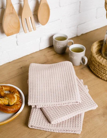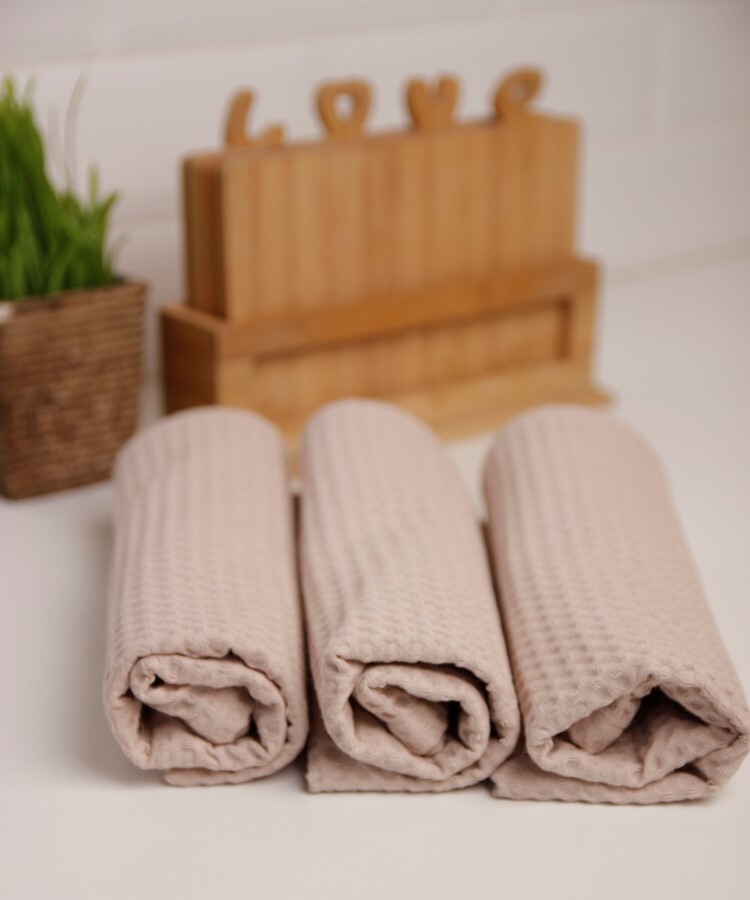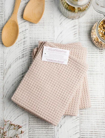 Полотенце кухонное , для рук , вафельное , набор / комплект бежевые 3 шт. 45*70
