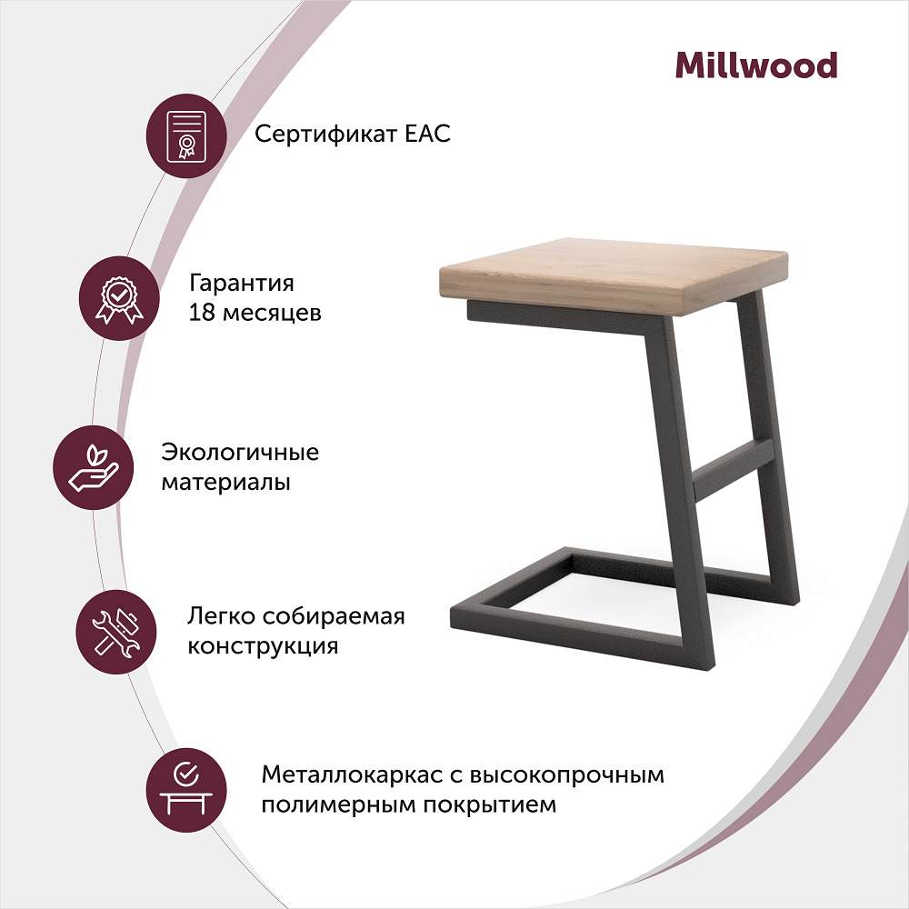 Табурет Лофт Арне 1 Дуб белый деревянный для кухни, 1 шт.