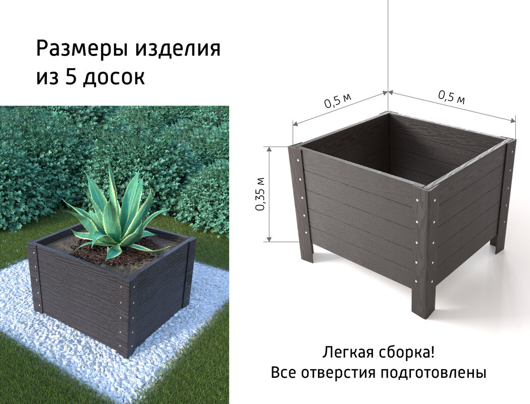 Клумба ДПК MINISTER/Пять досок/0,5*0,5 *0,35/Влагостойкая/Простая сборка/Защита от плесени/Износостойкая