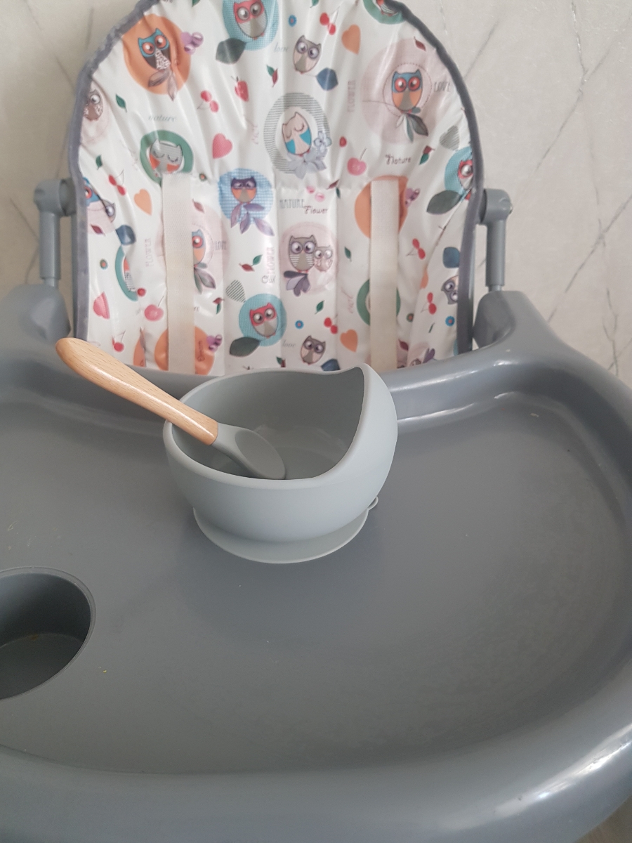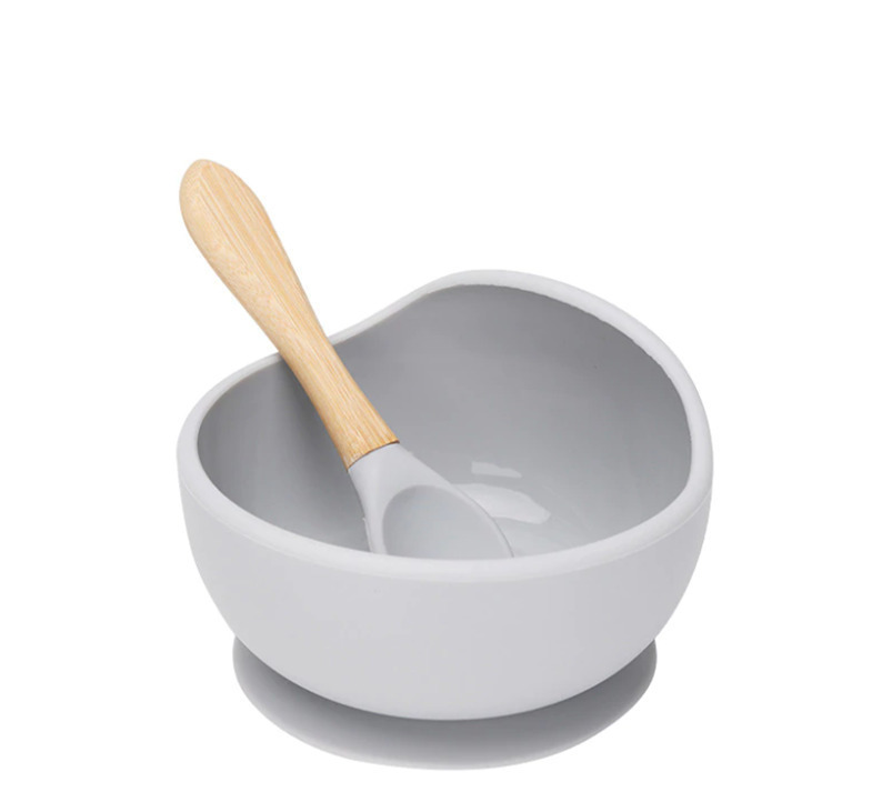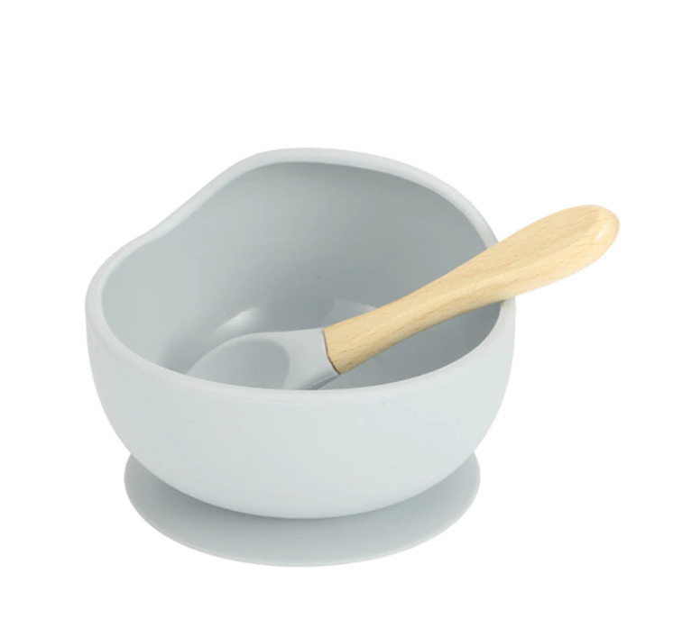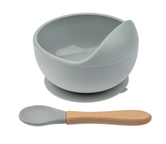 Силиконовая тарелка на присоске с ложкой Mio Bimbi, серая, 300 мл