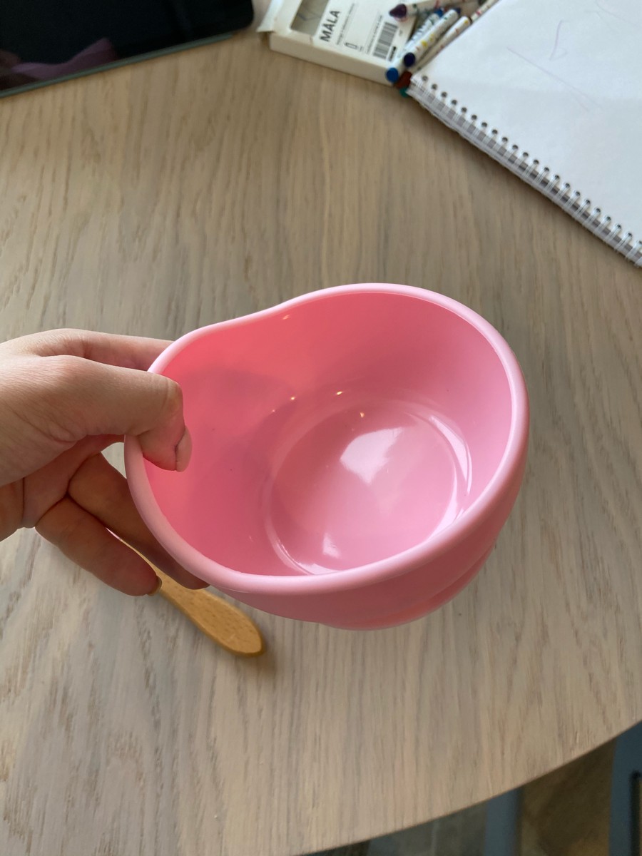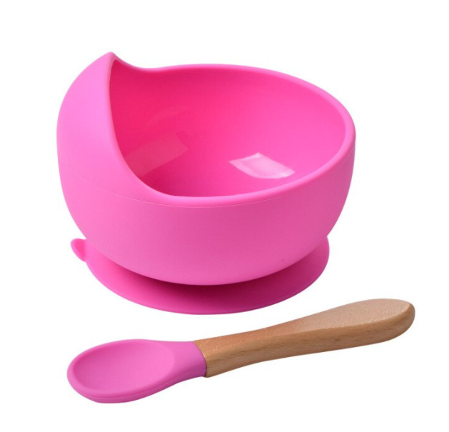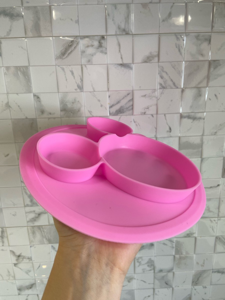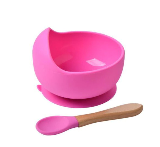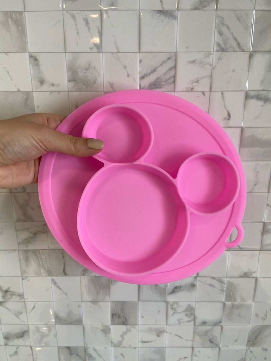 Силиконовая тарелка для кормления на присоске с ложкой Mio Bimbi, ярко-розовая, 300 мл
