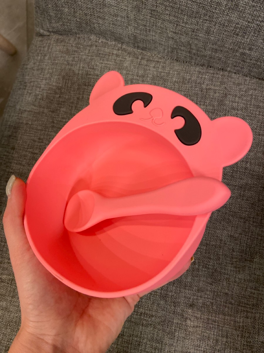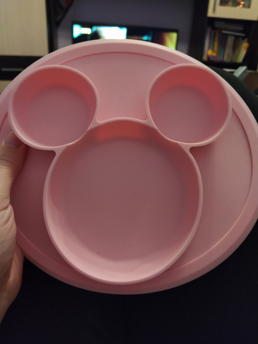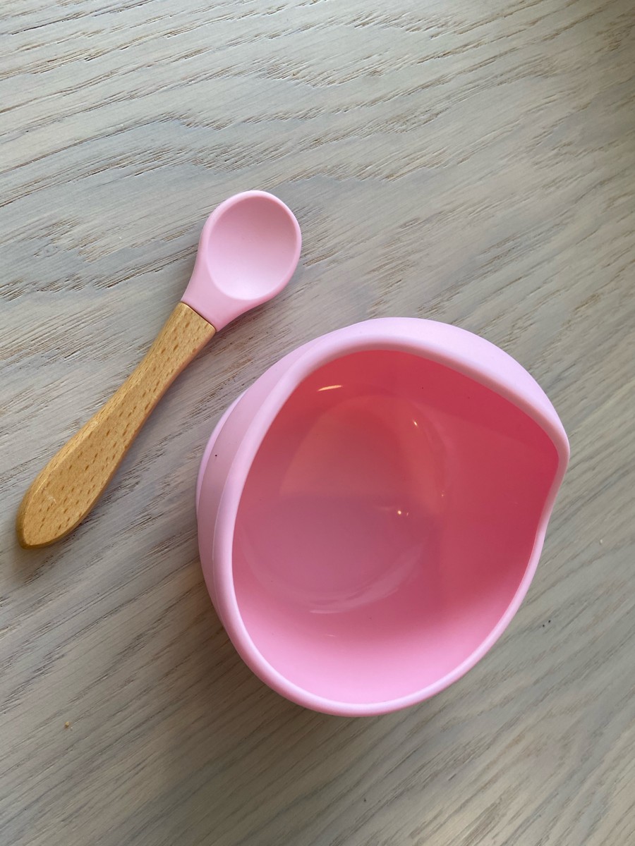 Силиконовая тарелка для кормления на присоске с ложкой Mio Bimbi, ярко-розовая, 300 мл