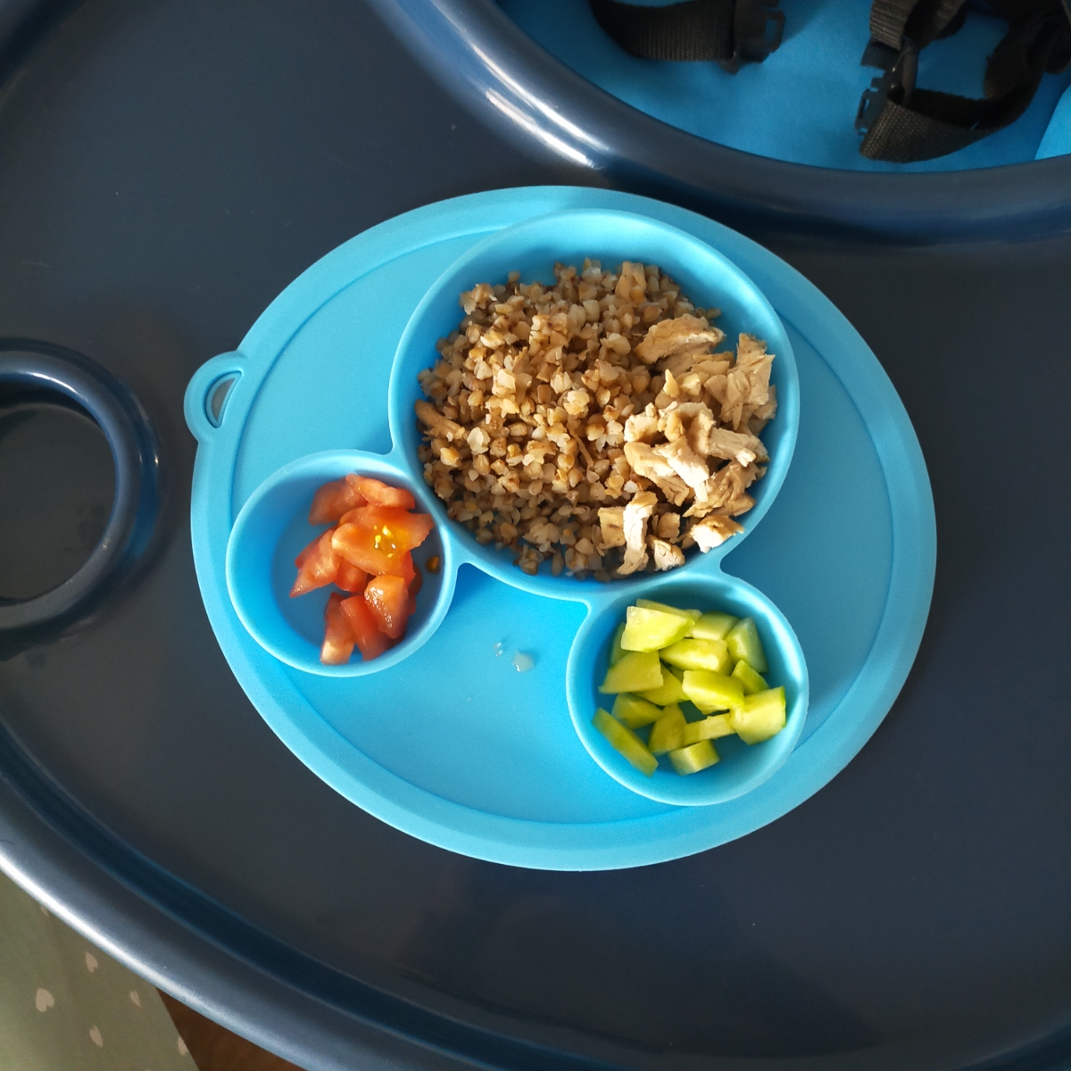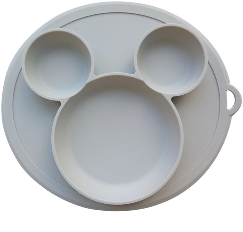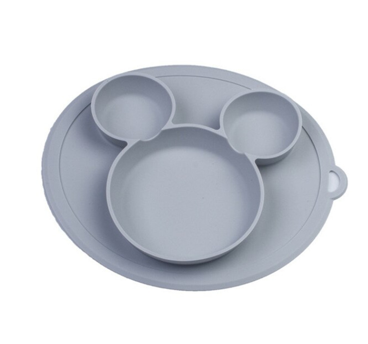 Тарелка с противоскользящим ковриком Mio Bimbi, 3 секции, силикон, серая, 20х23 см