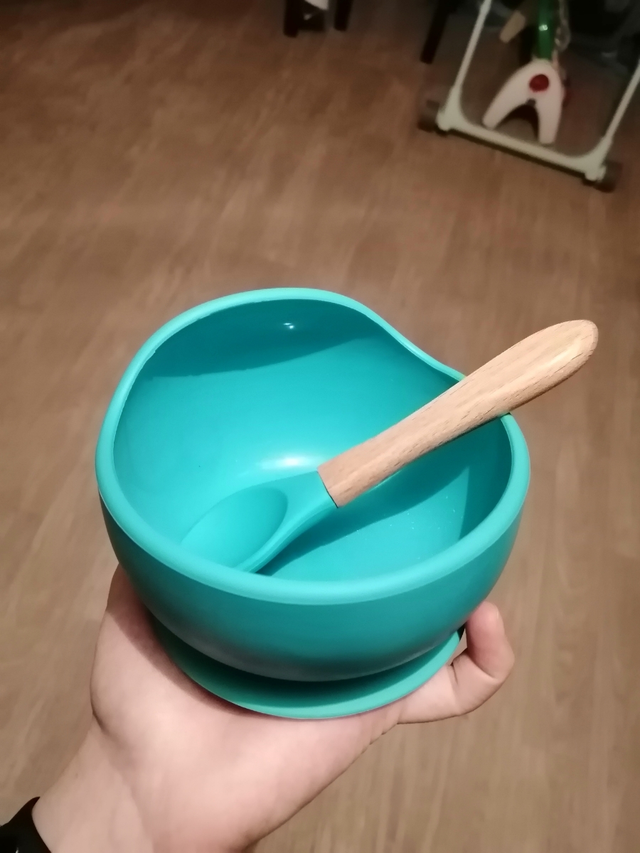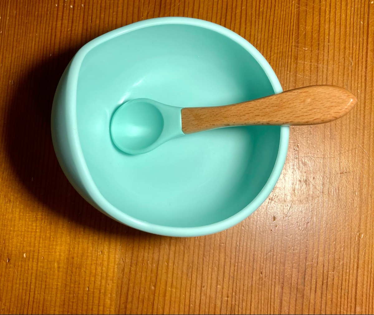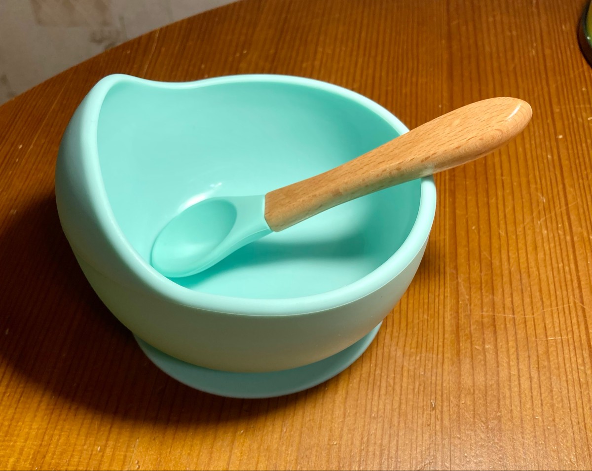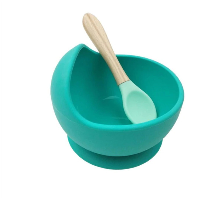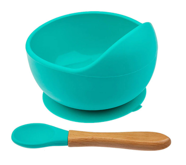 Силиконовая тарелка Mio Bimbi на присоске с ложкой, бирюзовая, 300 мл