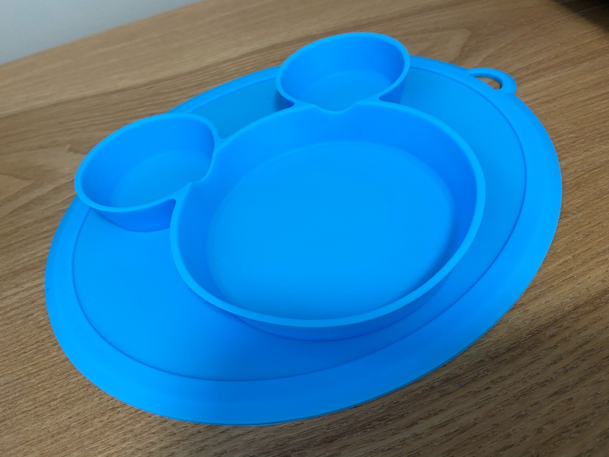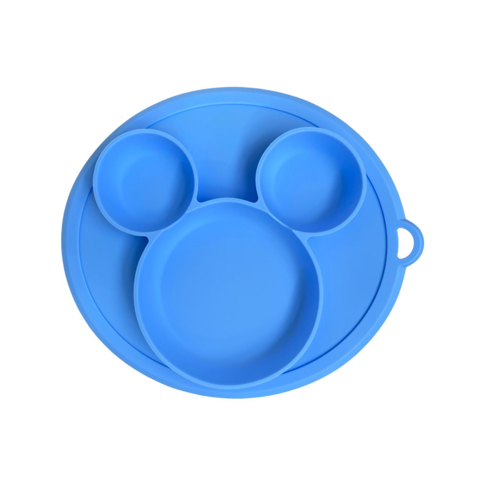 Тарелка силиконовая на присоске Mio Bimbi, 3 секции, голубая, 22х19 см