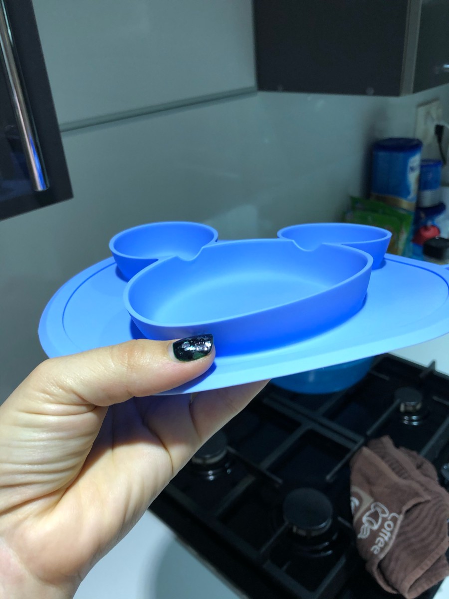Тарелка силиконовая на присоске Mio Bimbi, 3 секции, светло-голубая, 22х19 см