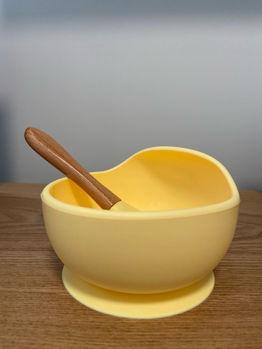 Силиконовая тарелка "Панда" на присоске с ложкой Mio Bimbi, светло-желтая, 400 мл