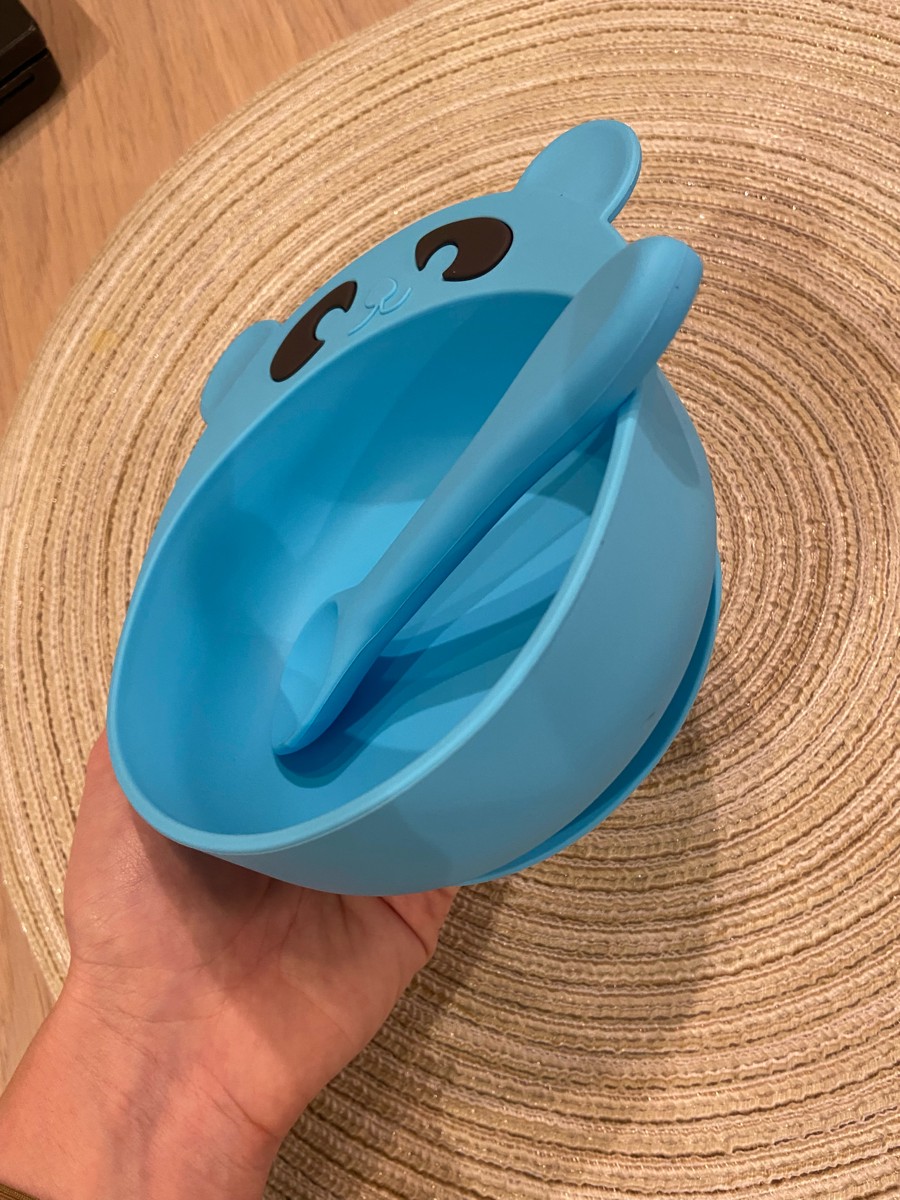 Силиконовая тарелка на присоске с ложкой Mio Bimbi, голубая, 300 мл