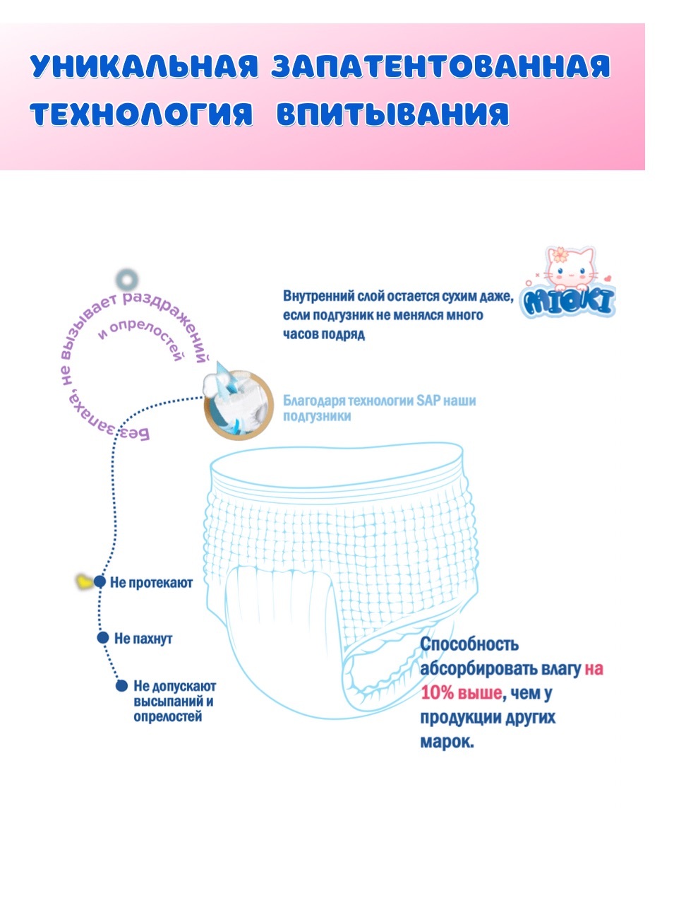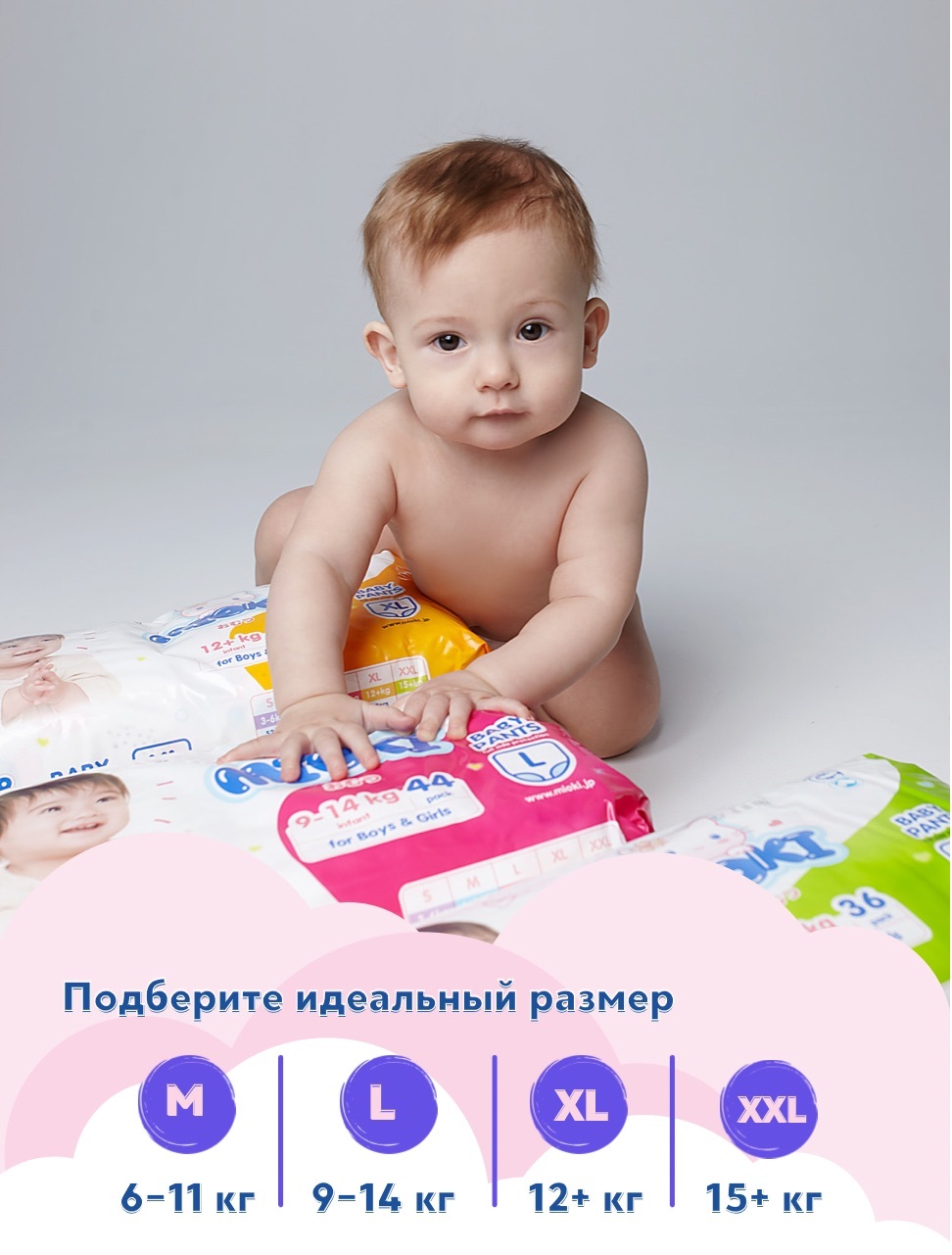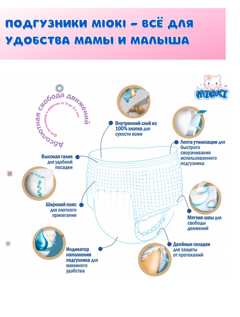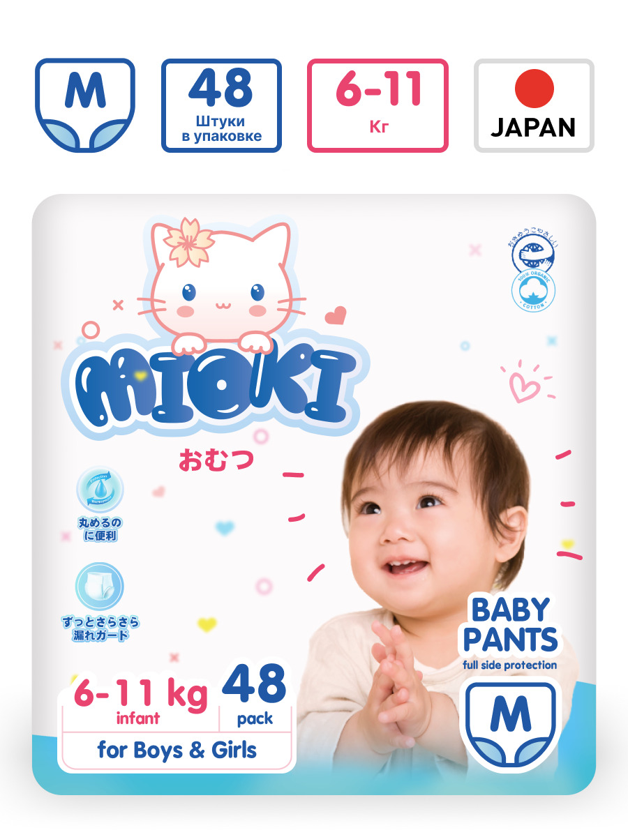 Трусики-подгузники MIOKI, размер M (6-11 кг.), 48 шт