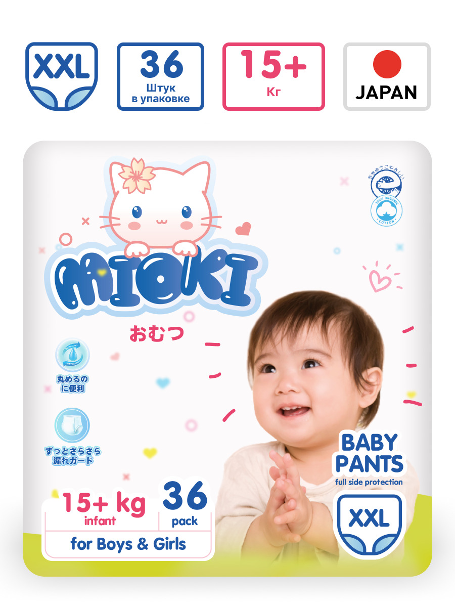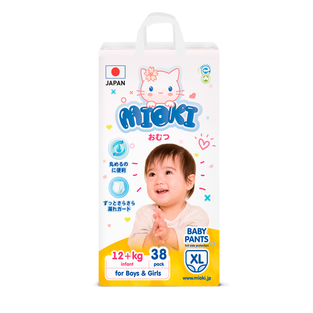 Трусики-подгузники MIOKI, размер XL (12+ кг.), 38 шт