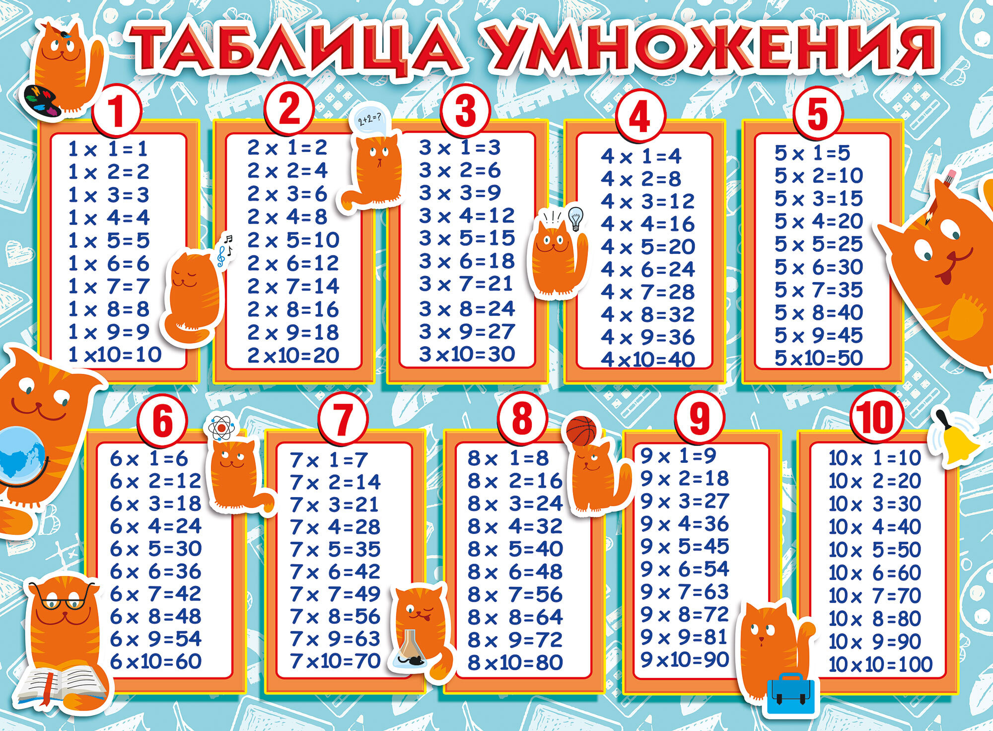 Обучающий плакат для детей по математике "Таблица умножения", А2, 44х60 см, Картон