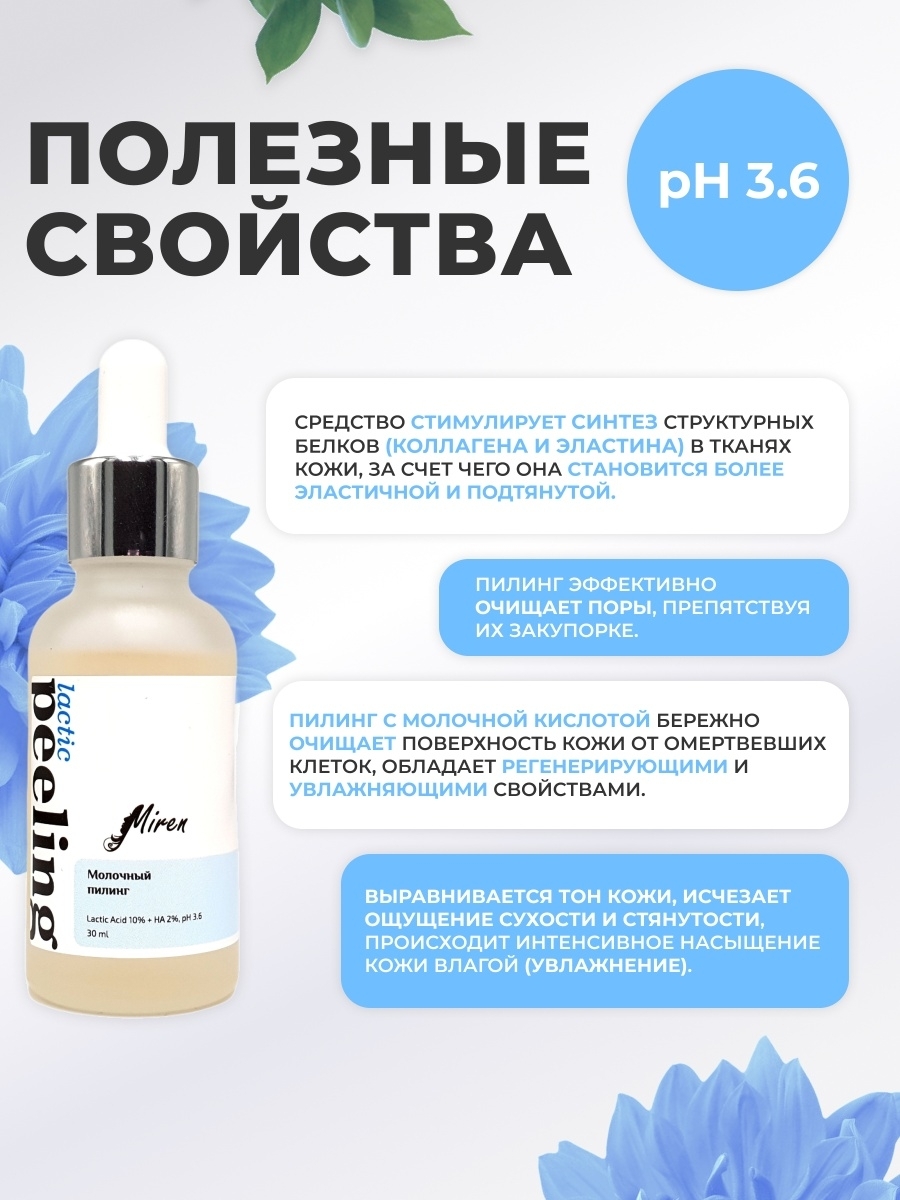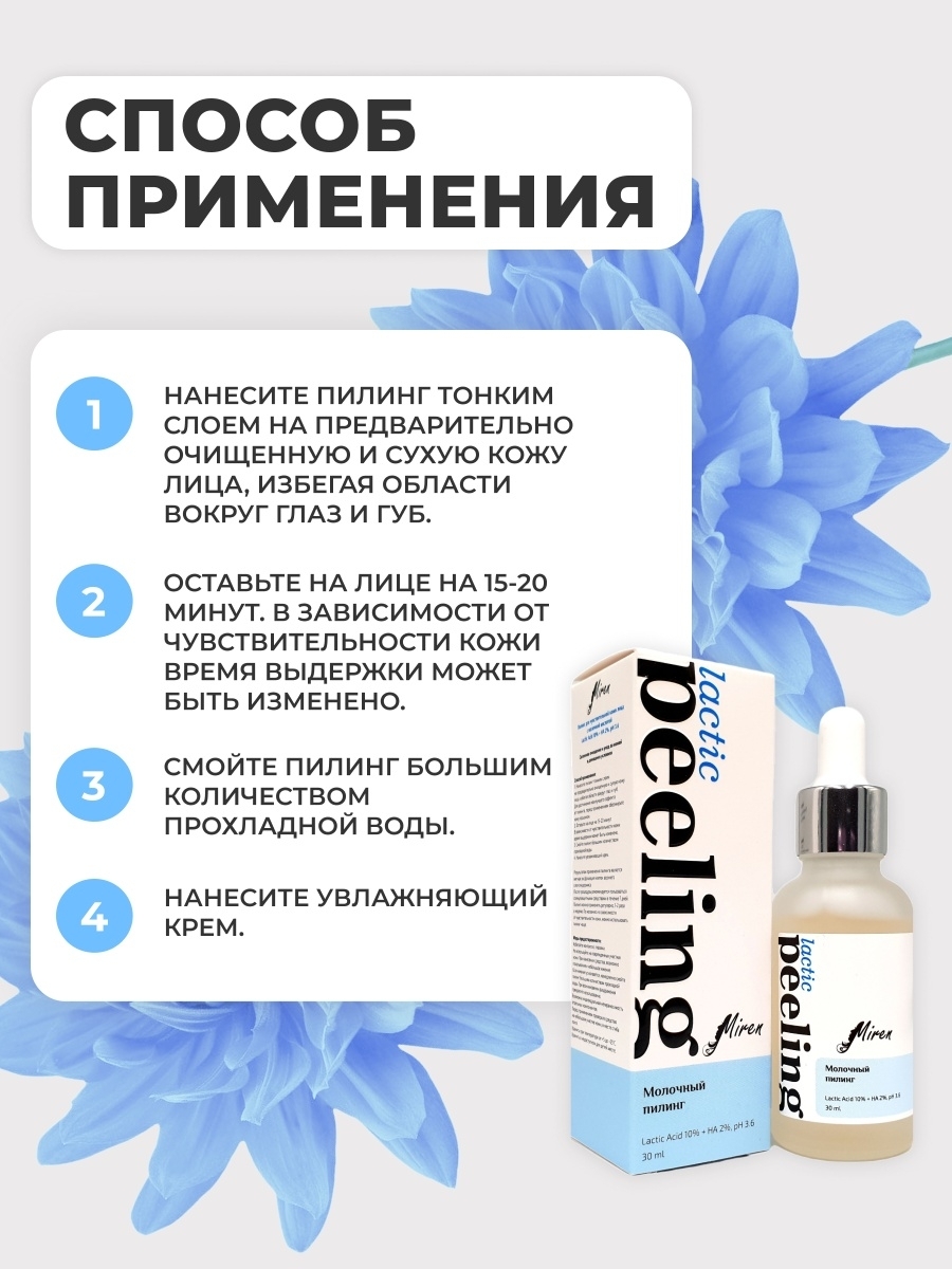 Miren Молочный пилинг для лица 10% молочной кислоты. Для сухой, нормальной, чувствительной кожи. 30 мл.