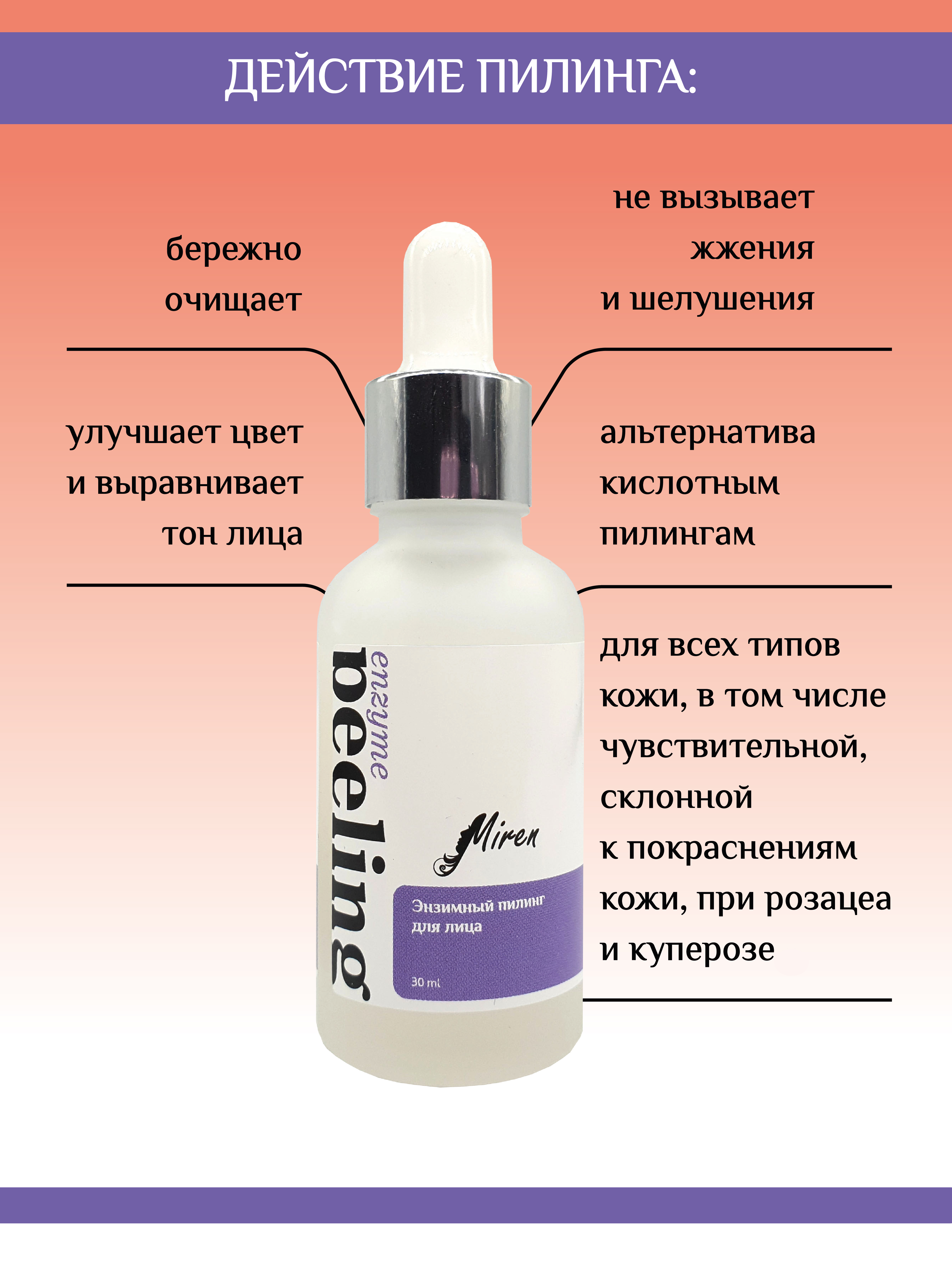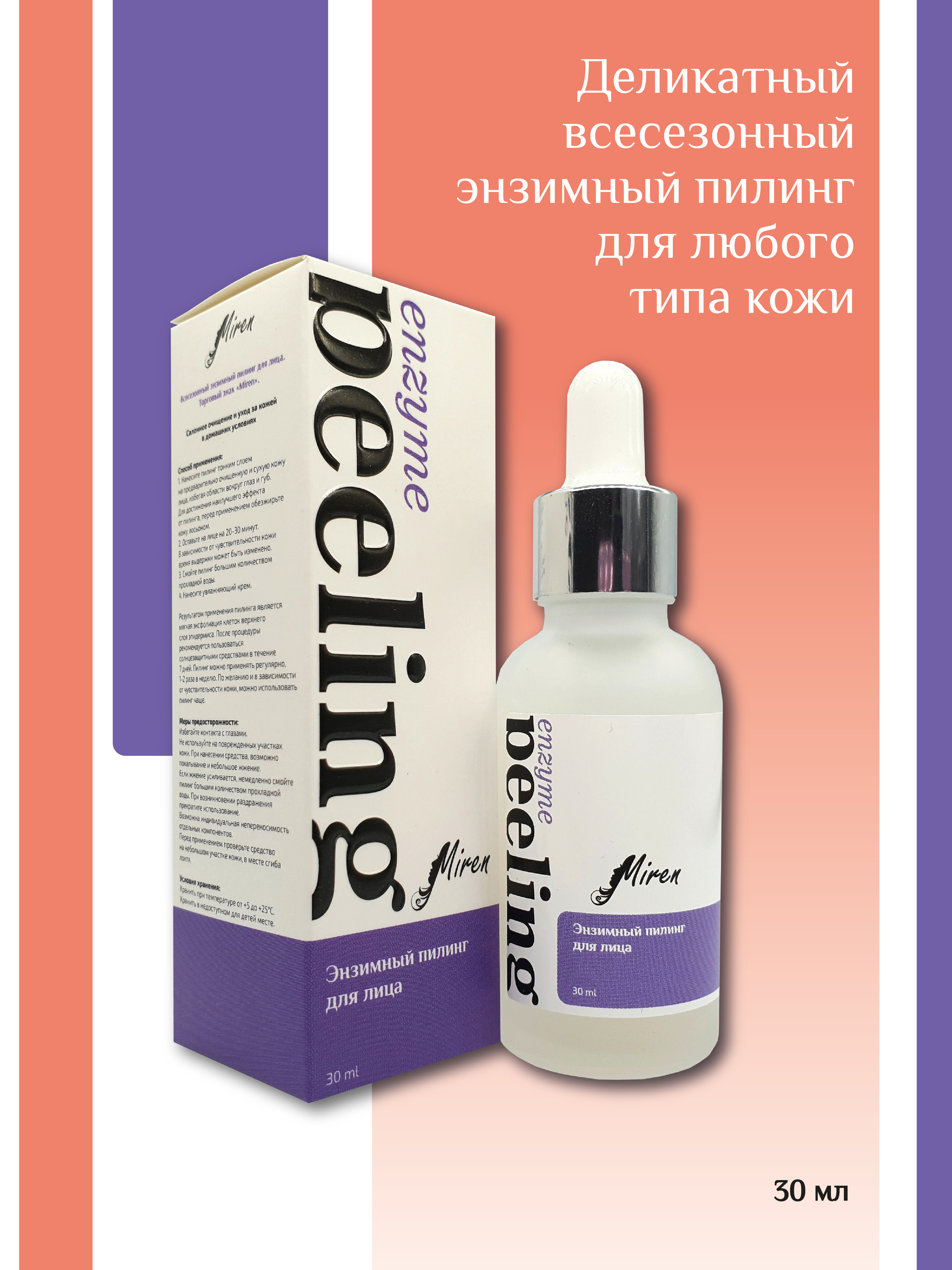 Miren Энзимный пилинг для лица, всесезонный, для любого типа кожи. 30 мл