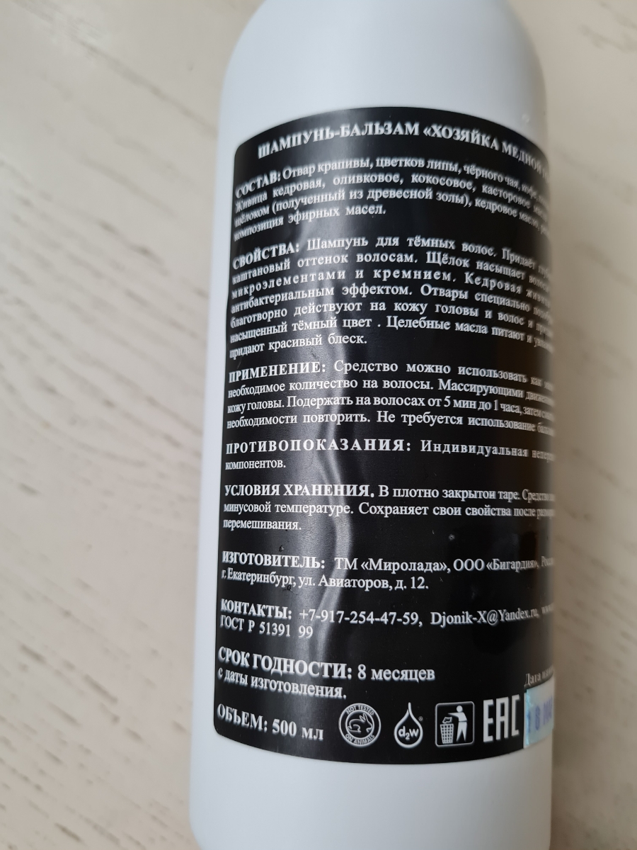 Шампунь-бальзам для темных волос Хозяйка медной горы