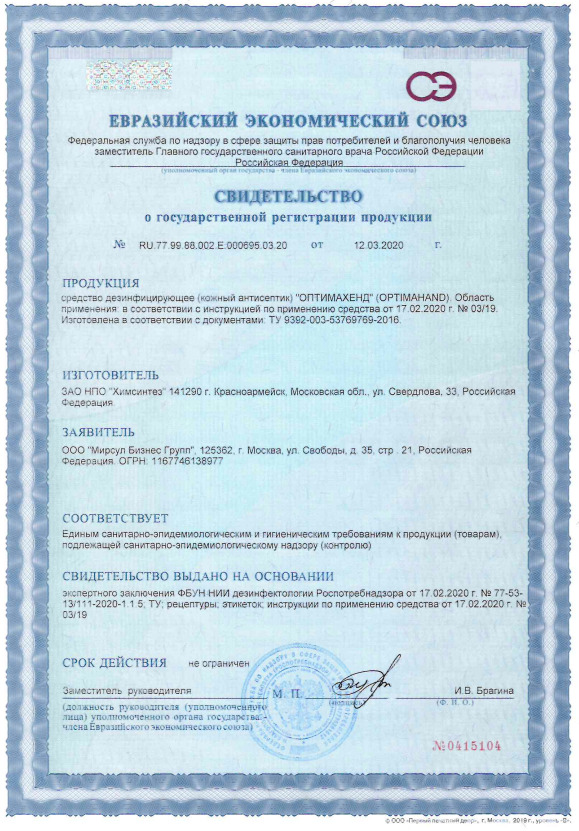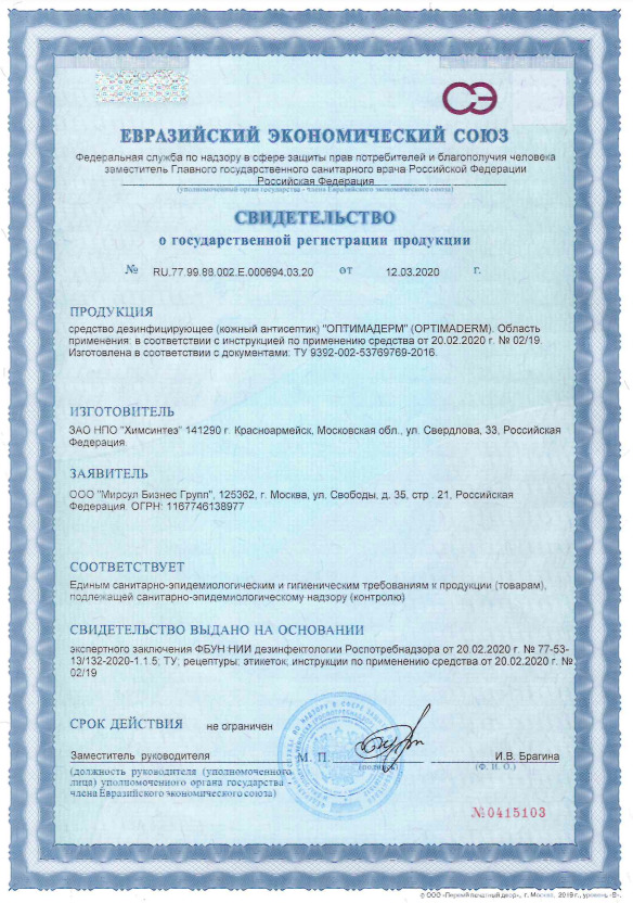 Оптимахенд кожный антисептик, 1 л. (дезинфицирующее средство)