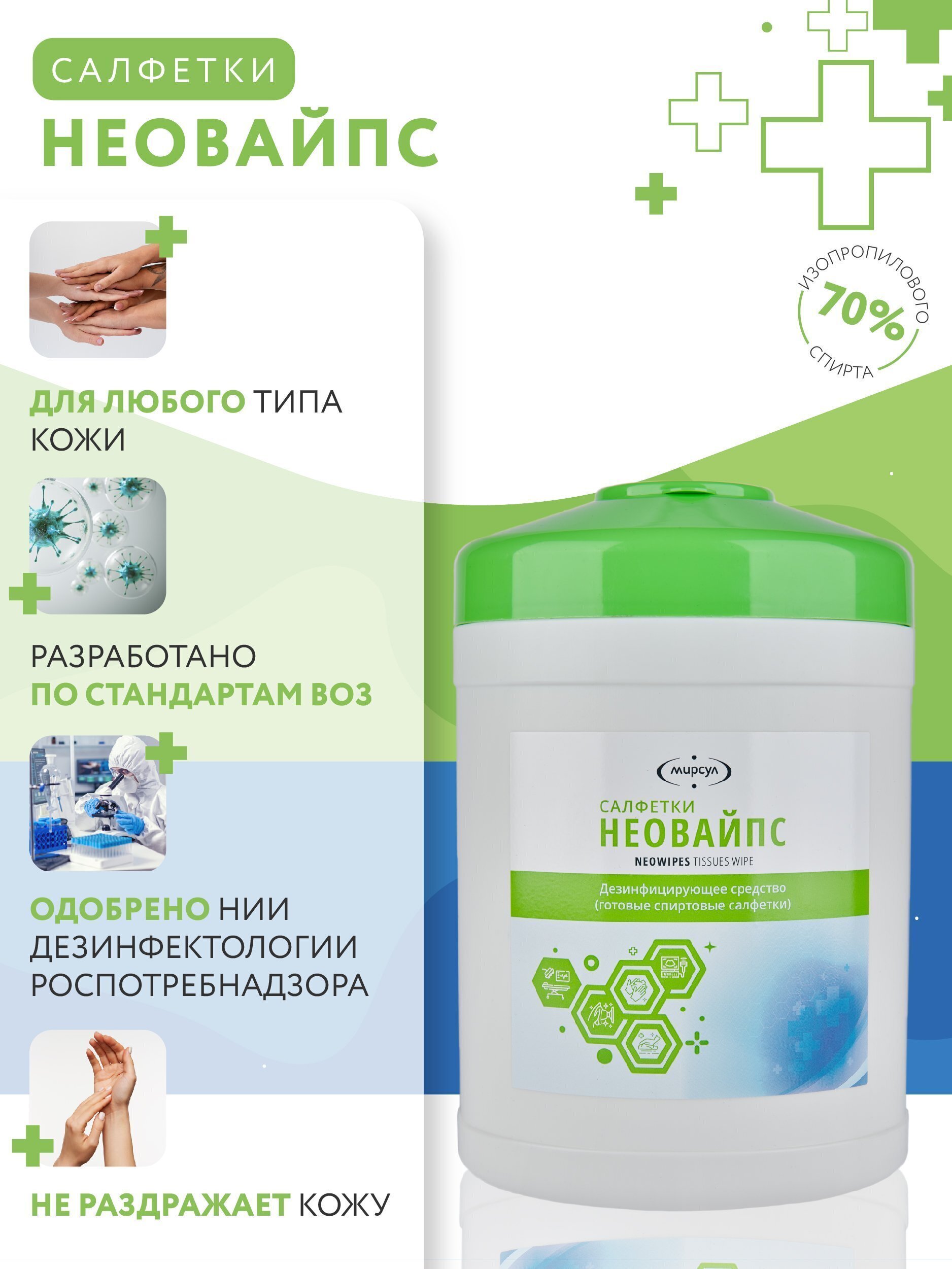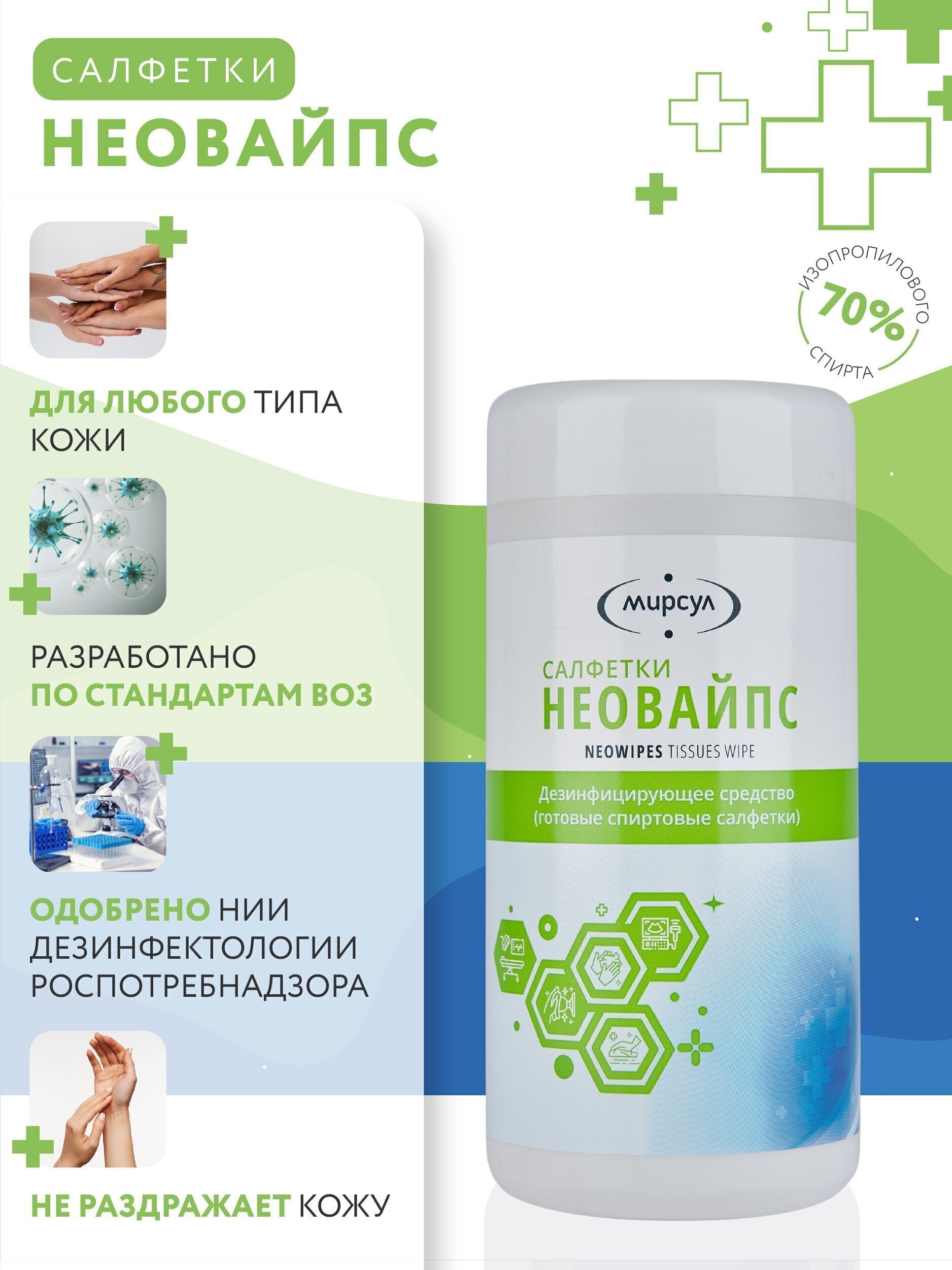 Влажные спиртовые салфетки Неовайпс банка, антисептические, дезинфицирующие