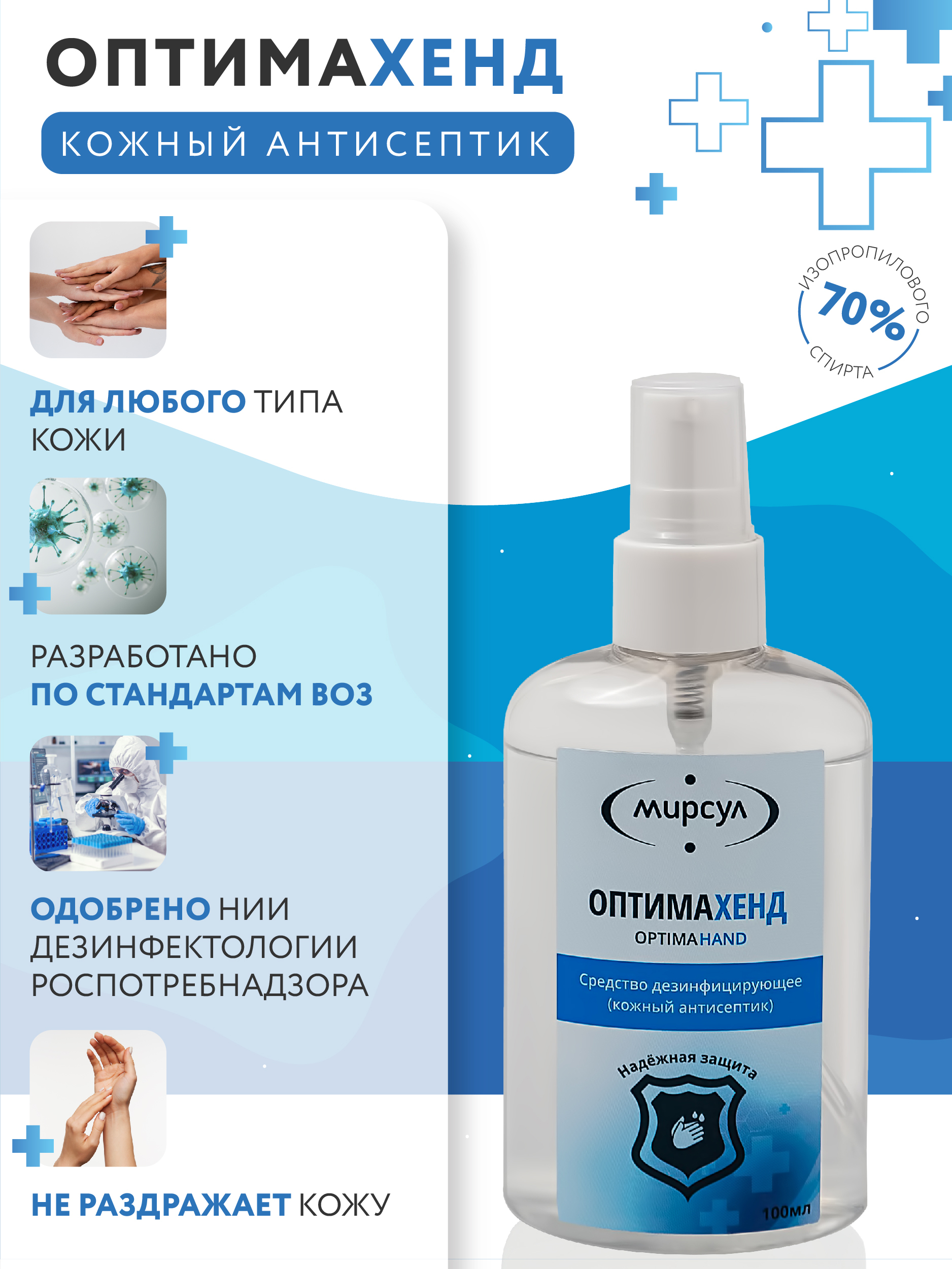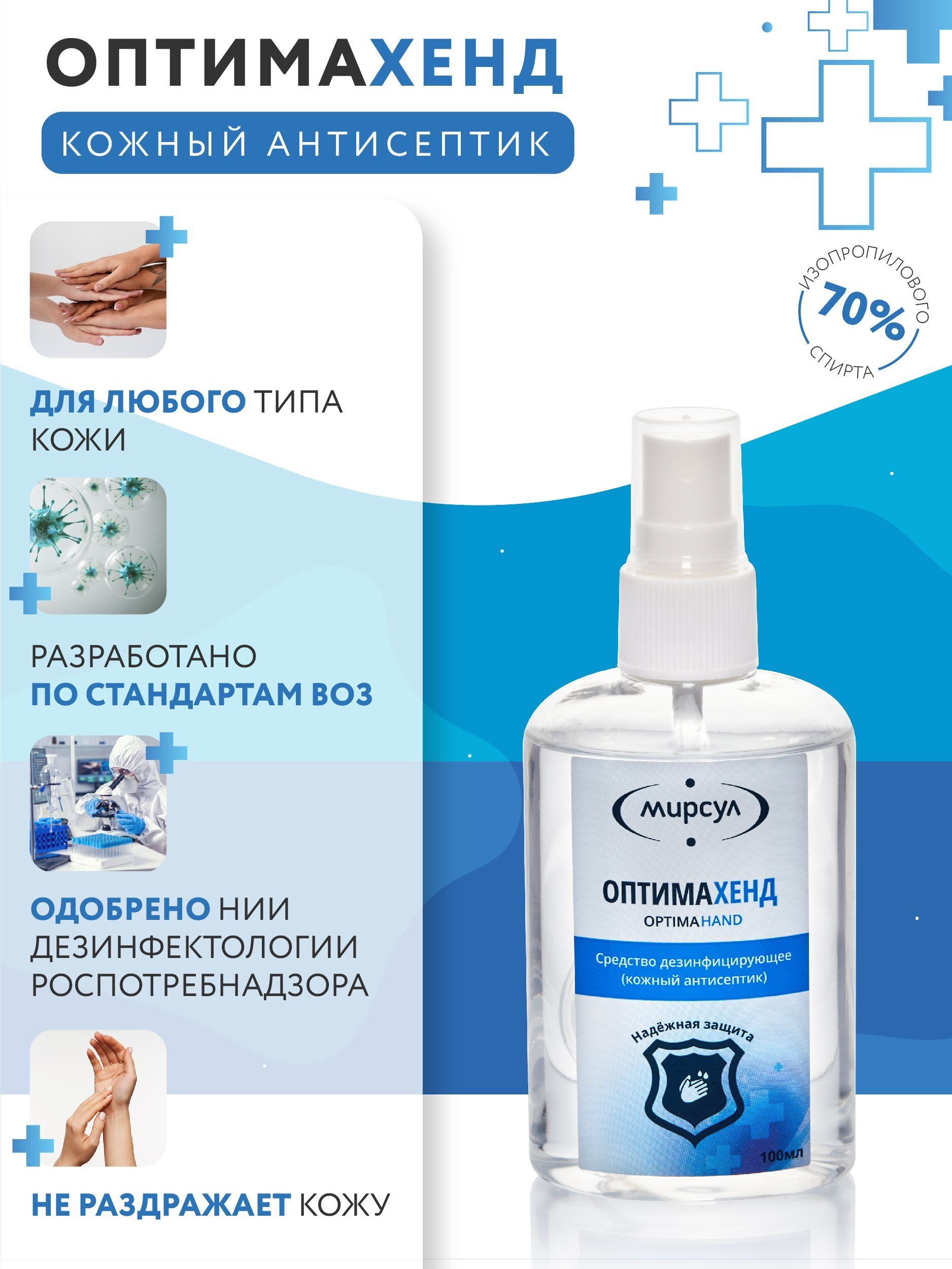 Спиртовой антисептик для рук спрей Оптимахенд с дозатором, дезинфицирующий