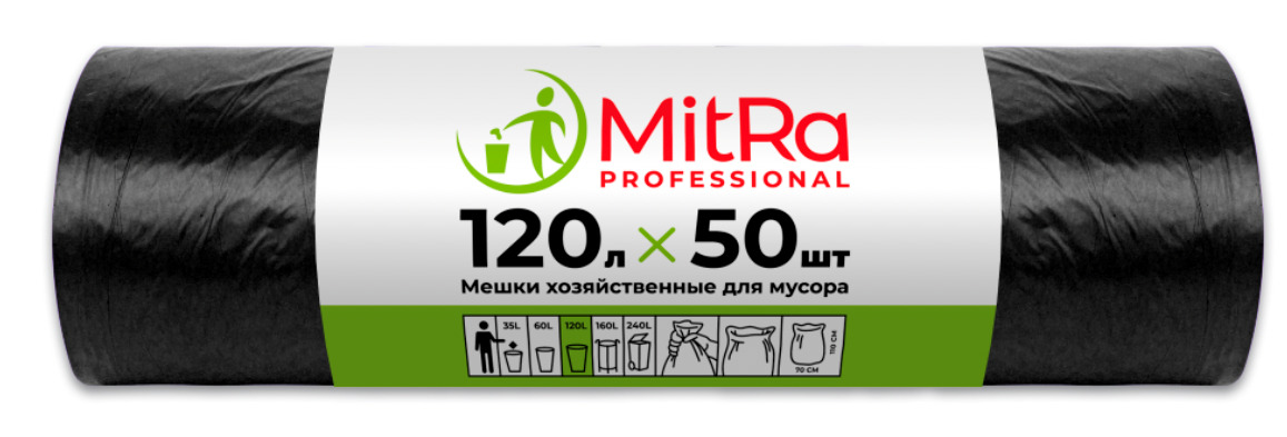 Мешки для мусора MitRa 120 л, 25мкм, 50 шт