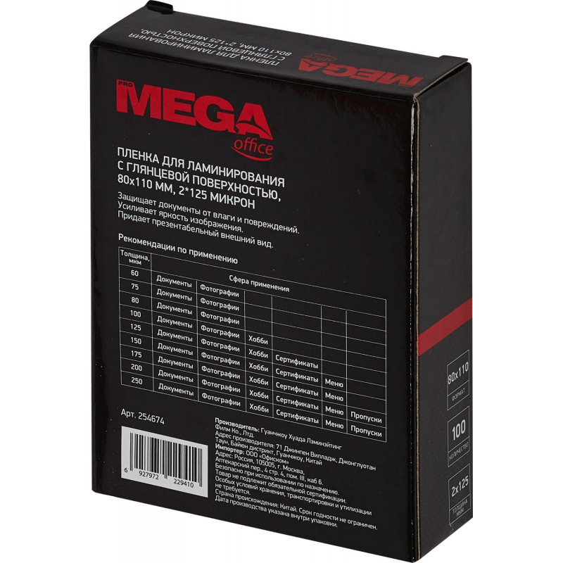 Ламинатор бумаги Mivis Пленка для ламинирования Promega office 80х110, 125мкм 100шт/уп.