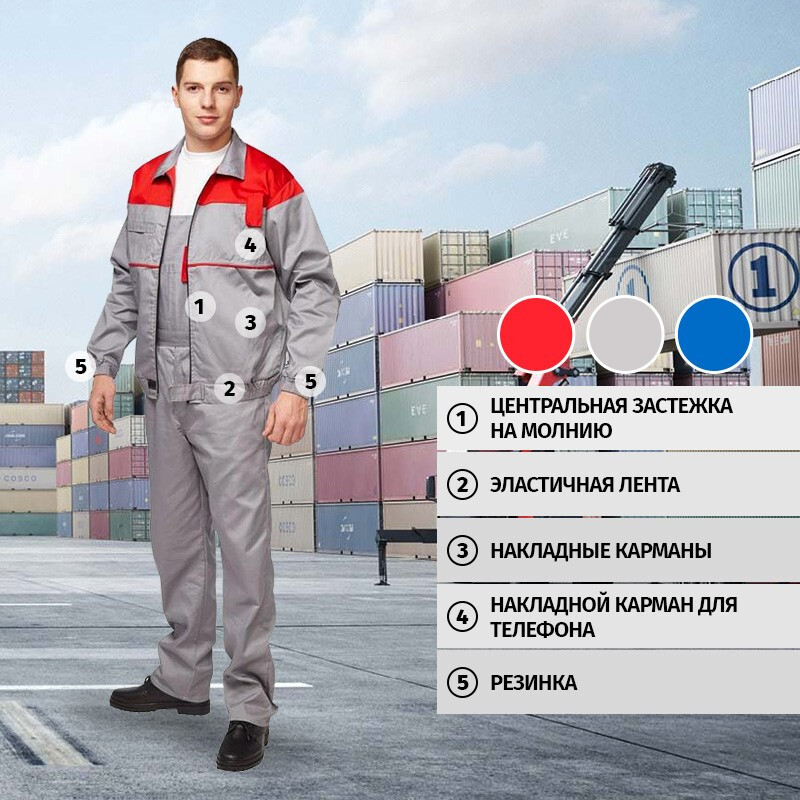 Спец.одежда летняя Костюм муж. Универсал кур/пк сер/красн. 56-58/170