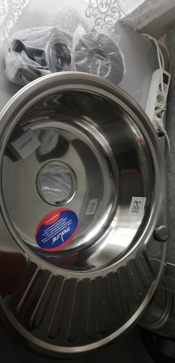 Раковина для кухни/ Мойка кухонная из нержавеющей стали Mixline 45х57 овал врезная с сифоном