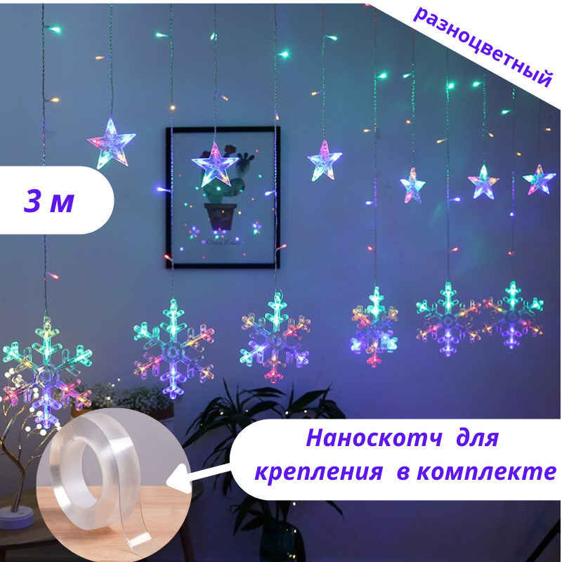 Электрогирлянда интерьерная Снежинки MIXSHOP Светодиодная 120 ламп, 3 м, питание От сети 220В, 1 шт