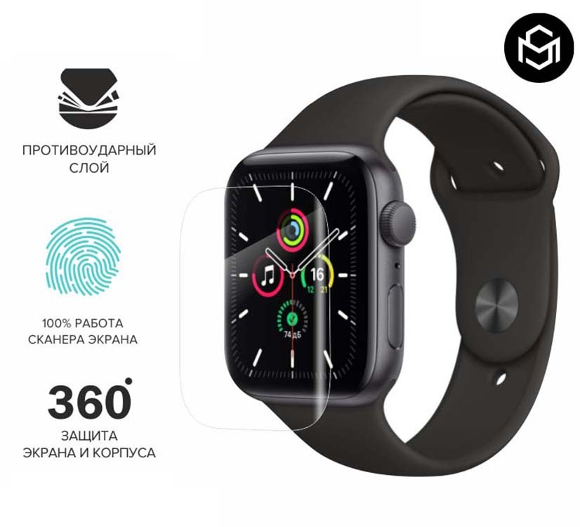 Гидрогелевая защитная пленка для часов Samsung Watch Active 2 (44mm) глянцевая, MixStore / Бронированная, самовосстанавливающаяся (2 штуки)