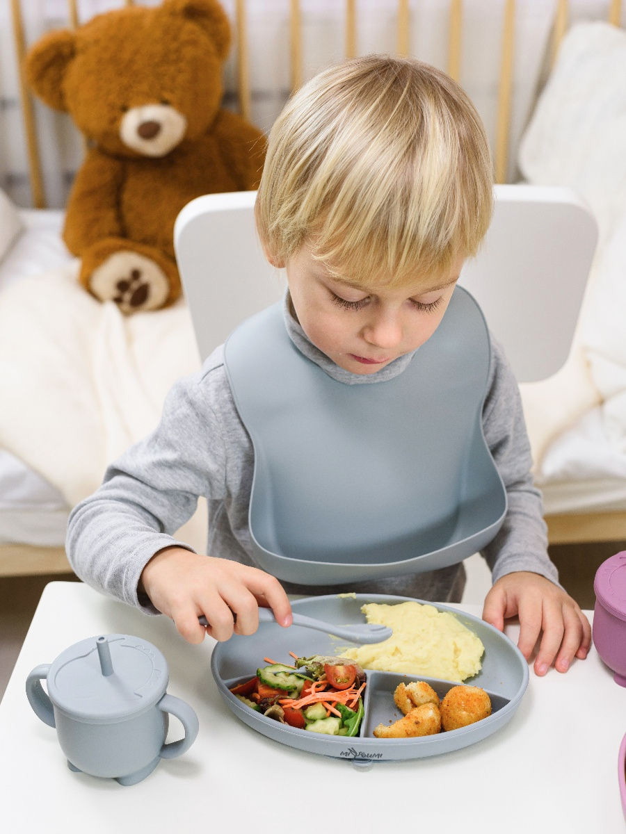Силиконовая тарелка на присоске + ложечка - Cloud / Набор для кормления детский