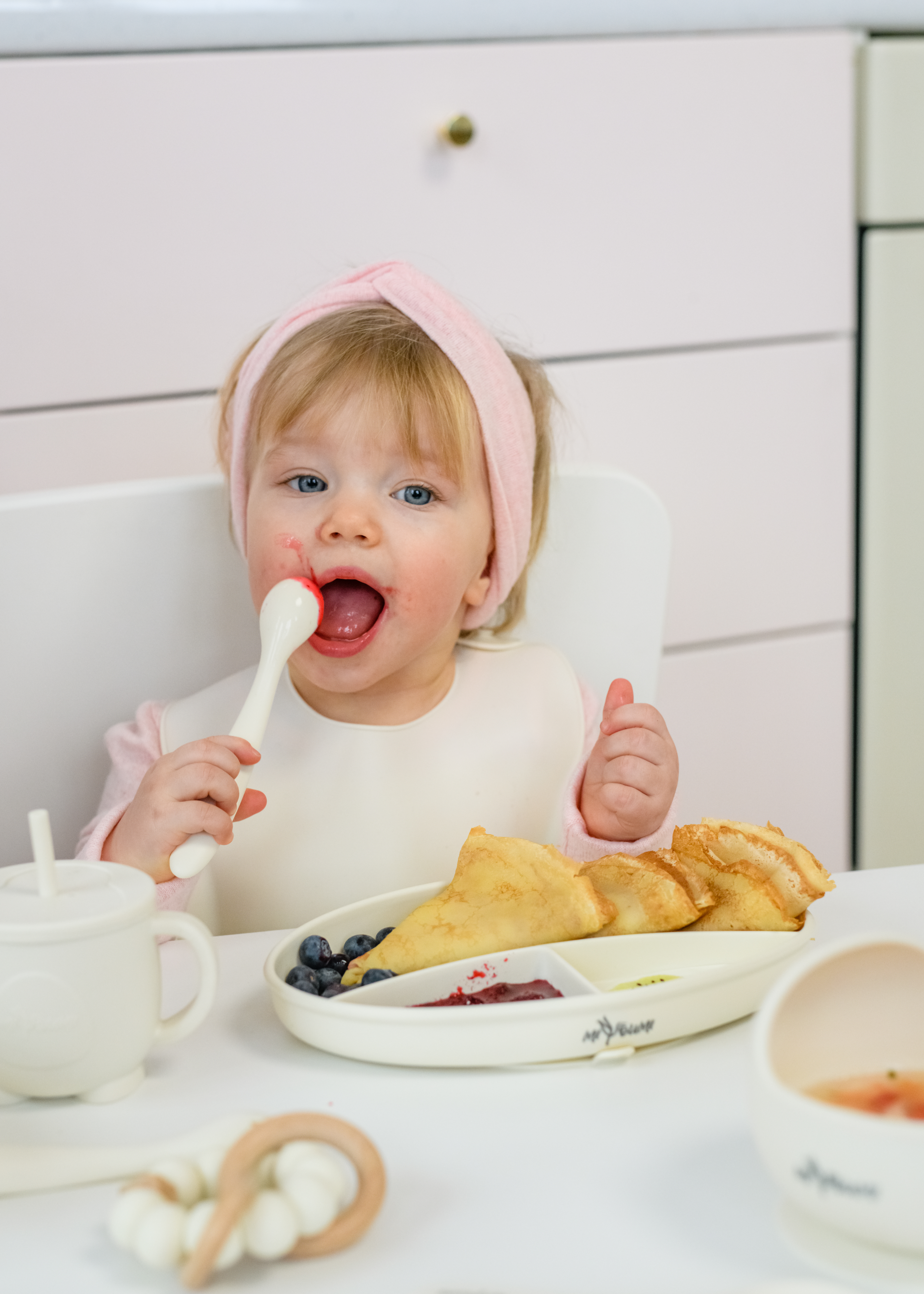 Силиконовая тарелка на присоске + ложечка - Sand / Набор для кормления детский