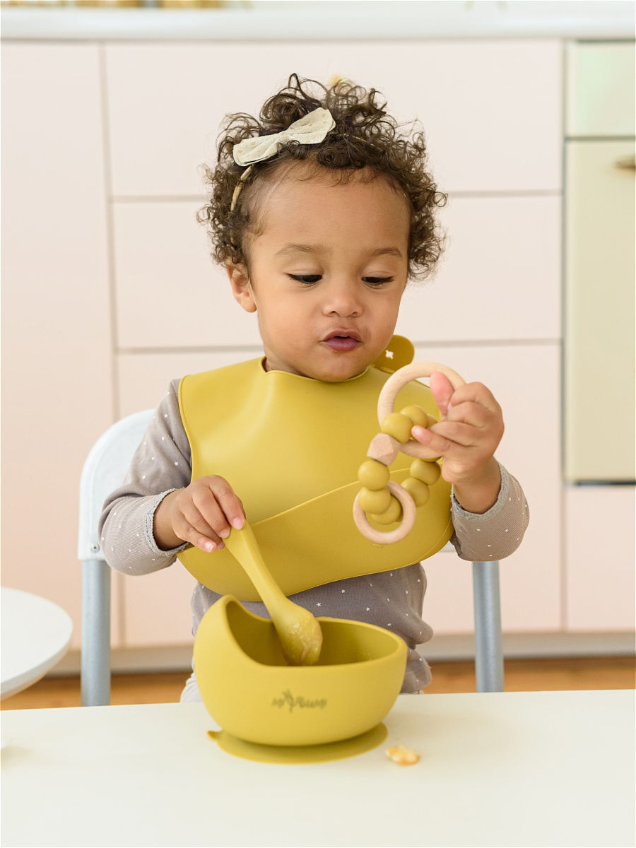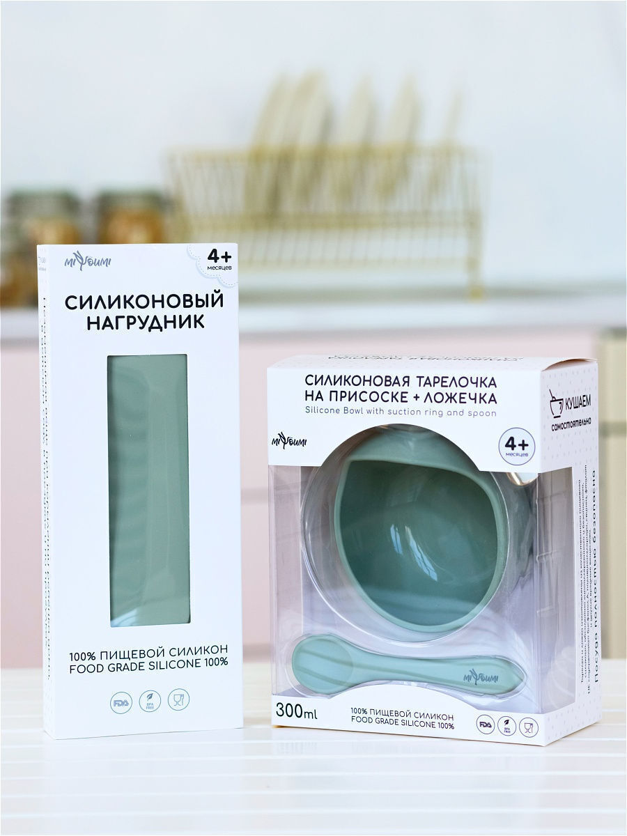 Силиконовая тарелка на присоске + ложечка - Sage / Набор для кормления детский
