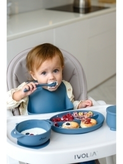 Силиконовая тарелка 1 на присоске с крышкой - Deep Space