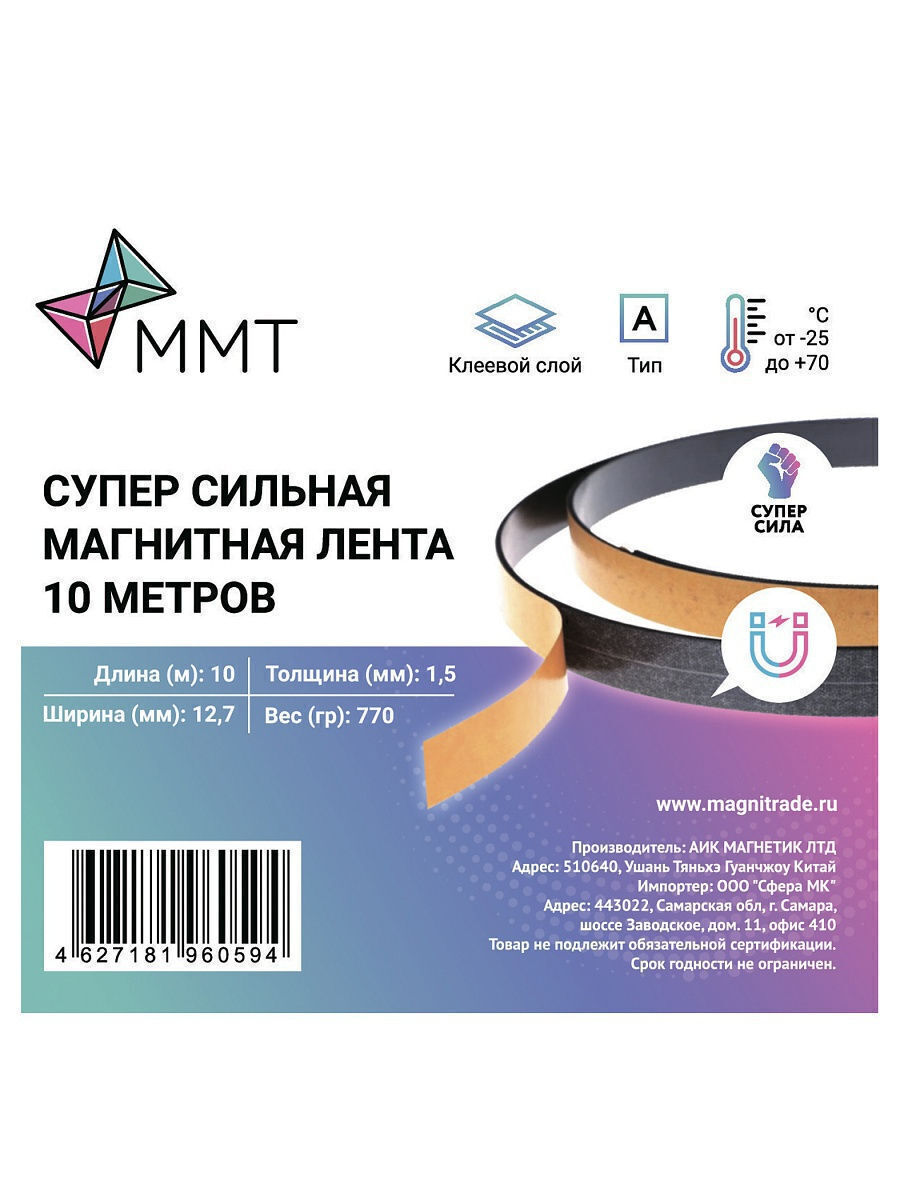 Магнитная лента, ширина 12.7 мм, тип Б (магнитная лента самоклеящаяся, длина 10 м.)