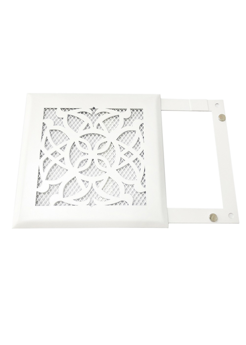 Вентиляционная решетка металлическая на магнитах 150х150 мм. (РП 150 восток), цвет белый матовый.