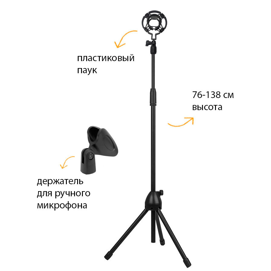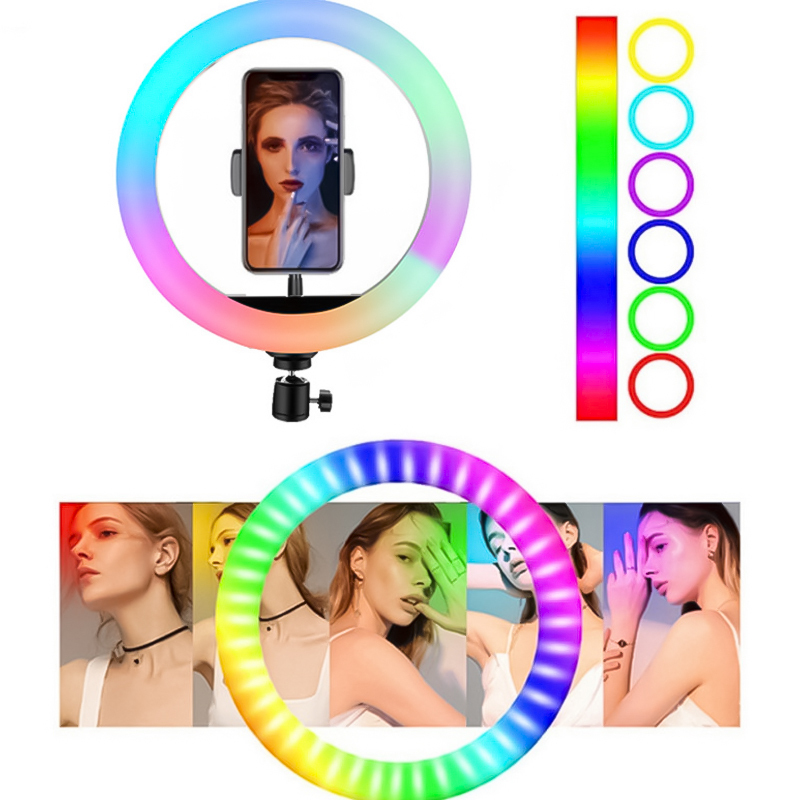 Цветная кольцевая лампа со штативом, журавлем, держателем для микрофона и телефона, диаметр 26 см
