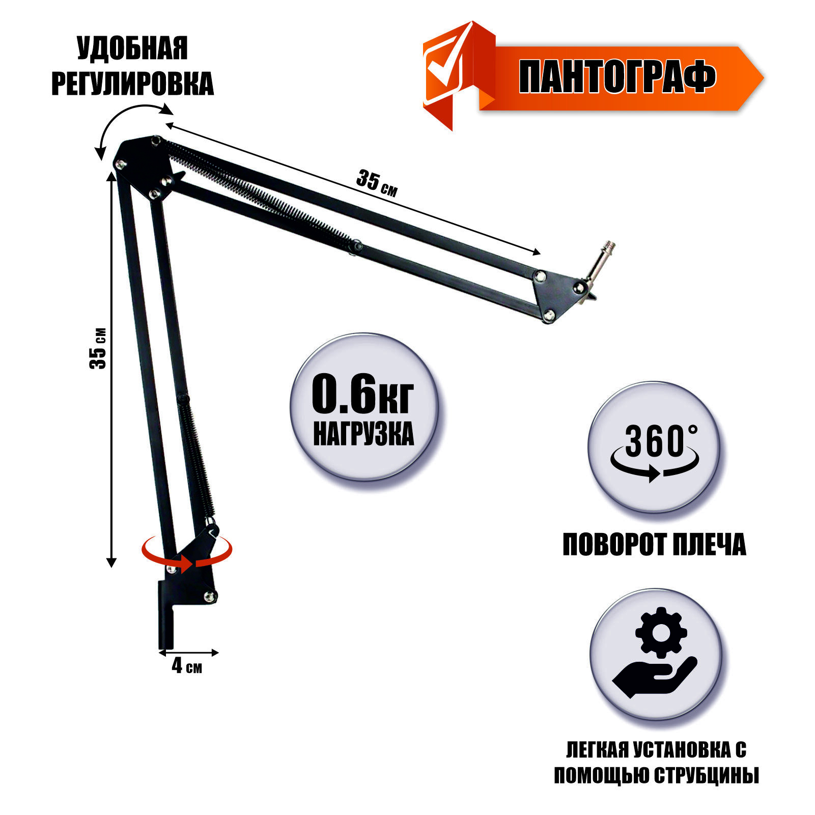Аксессуар для микрофона Mobicent Настольная стойка для микрофона пантограф с поп-фильтром