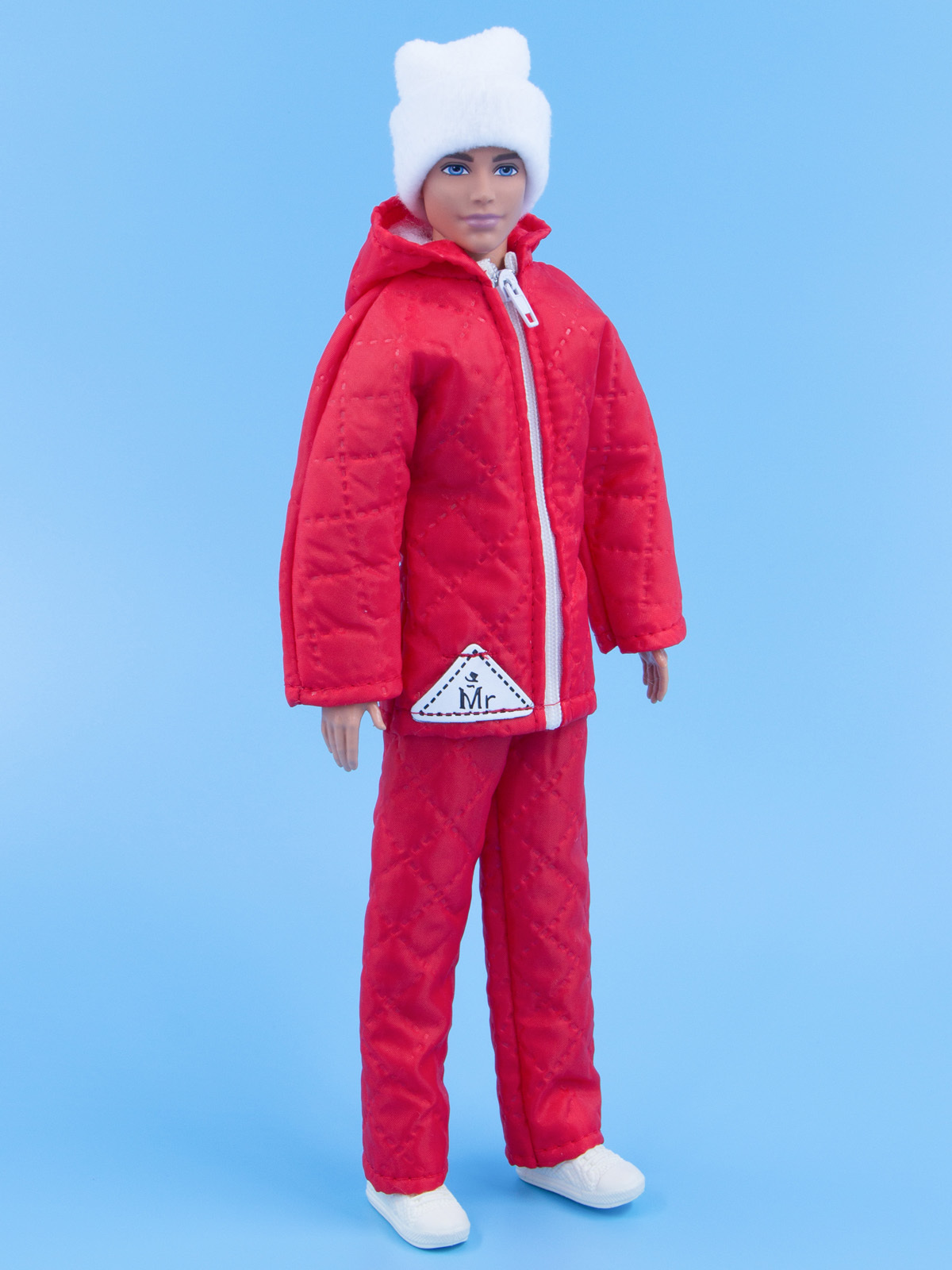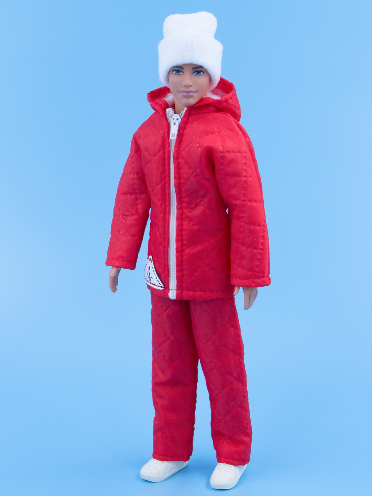 Одежда для кукол Модница Пуховик, штаны и шапка для куклы 29-30 см (мужской) красный