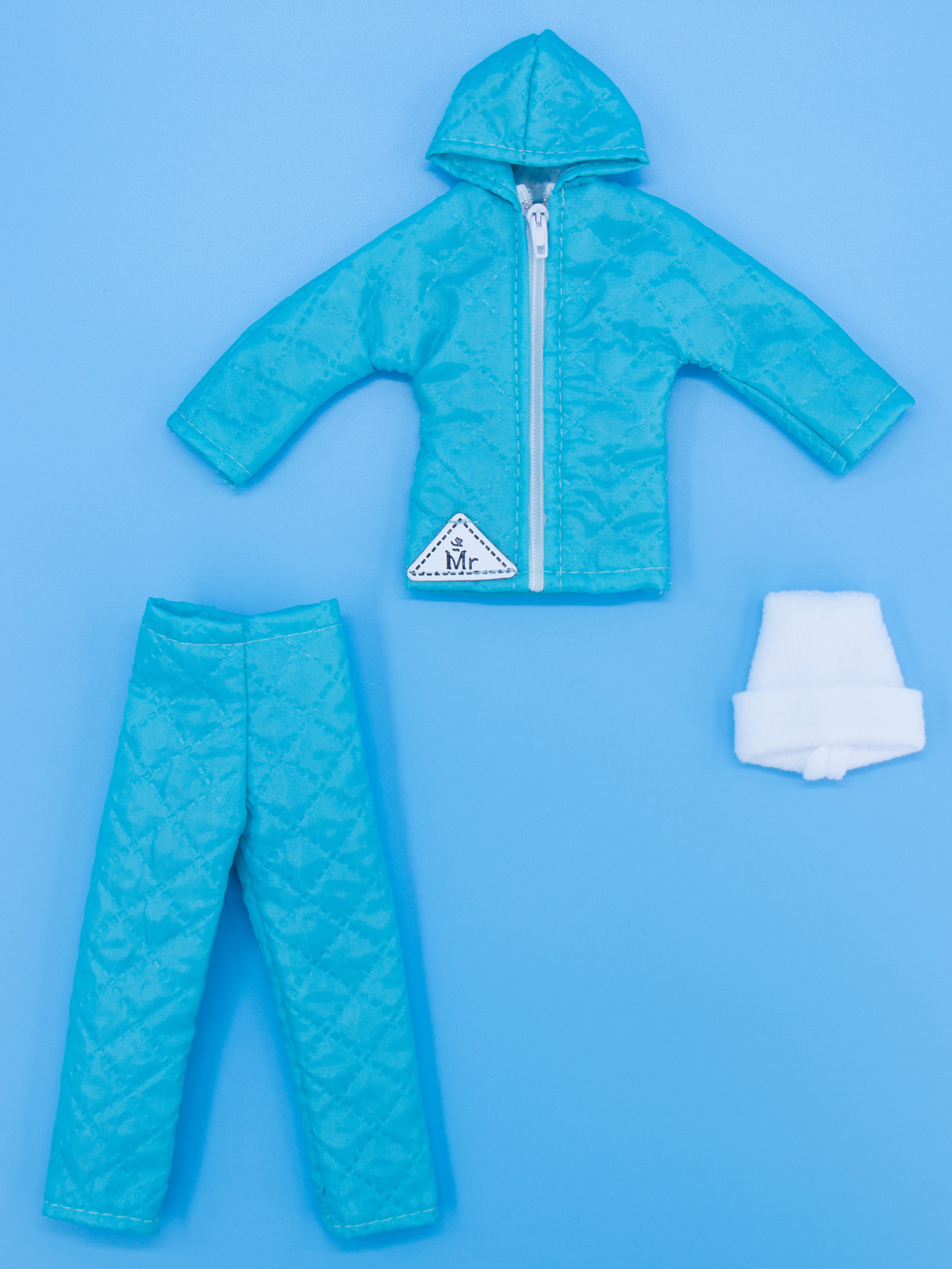 Одежда для кукол Модница Пуховик, штаны и шапка для куклы 29-30 см (мужской) бирюзовый