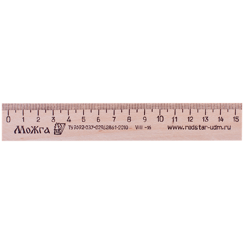 Линейка 15см Можга, деревянная, 50шт. (С03)