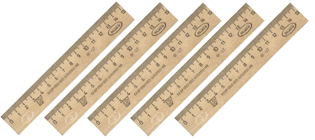 Линейка деревянная 15 см, МОЖГА, 3 штуки