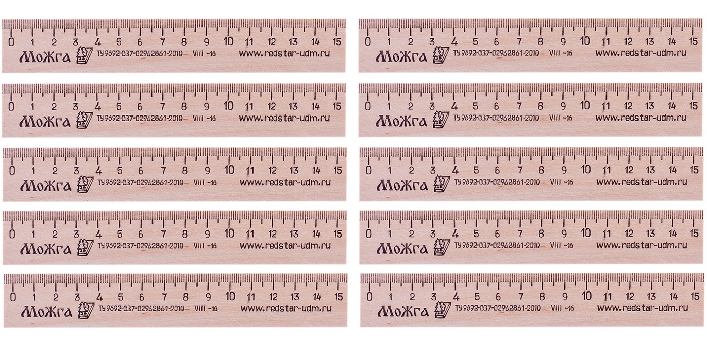 Линейка 15см ДЕРЕВЯННАЯ (комплект из 10 штук)