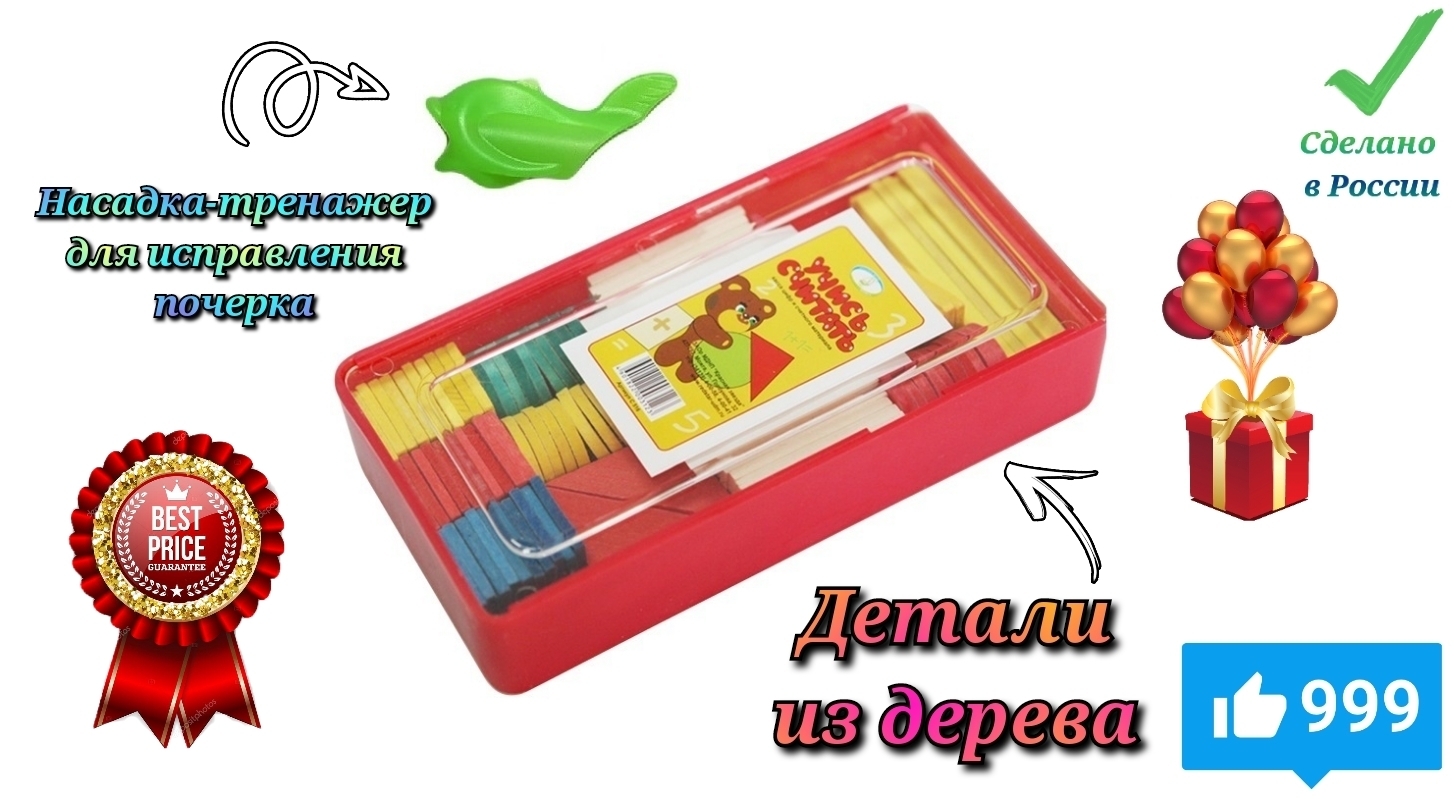 Касса цифр и счетного материала из натурального дерева "Учись считать", 128 предметов, пенал, С 515