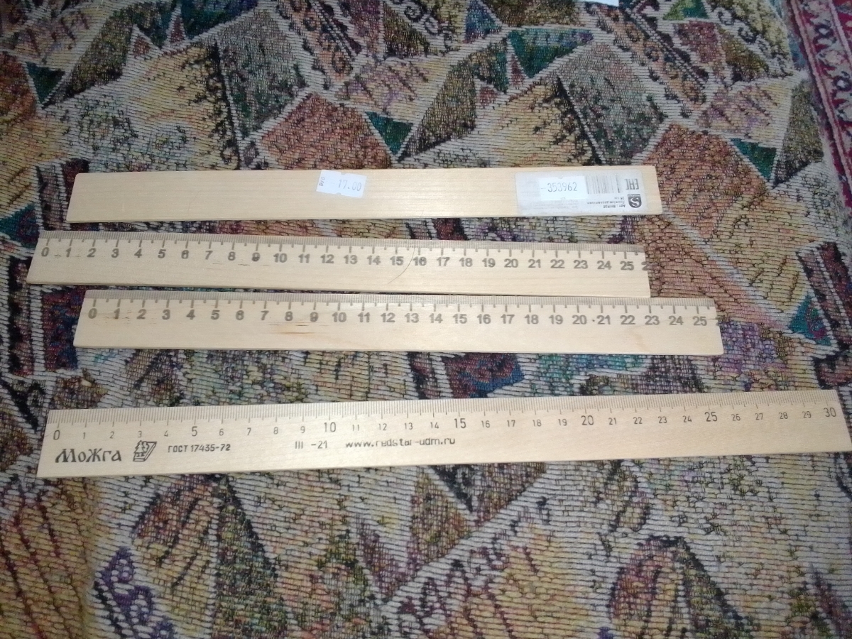 Линейка деревянная 25 см, МОЖГА, 3 штуки
