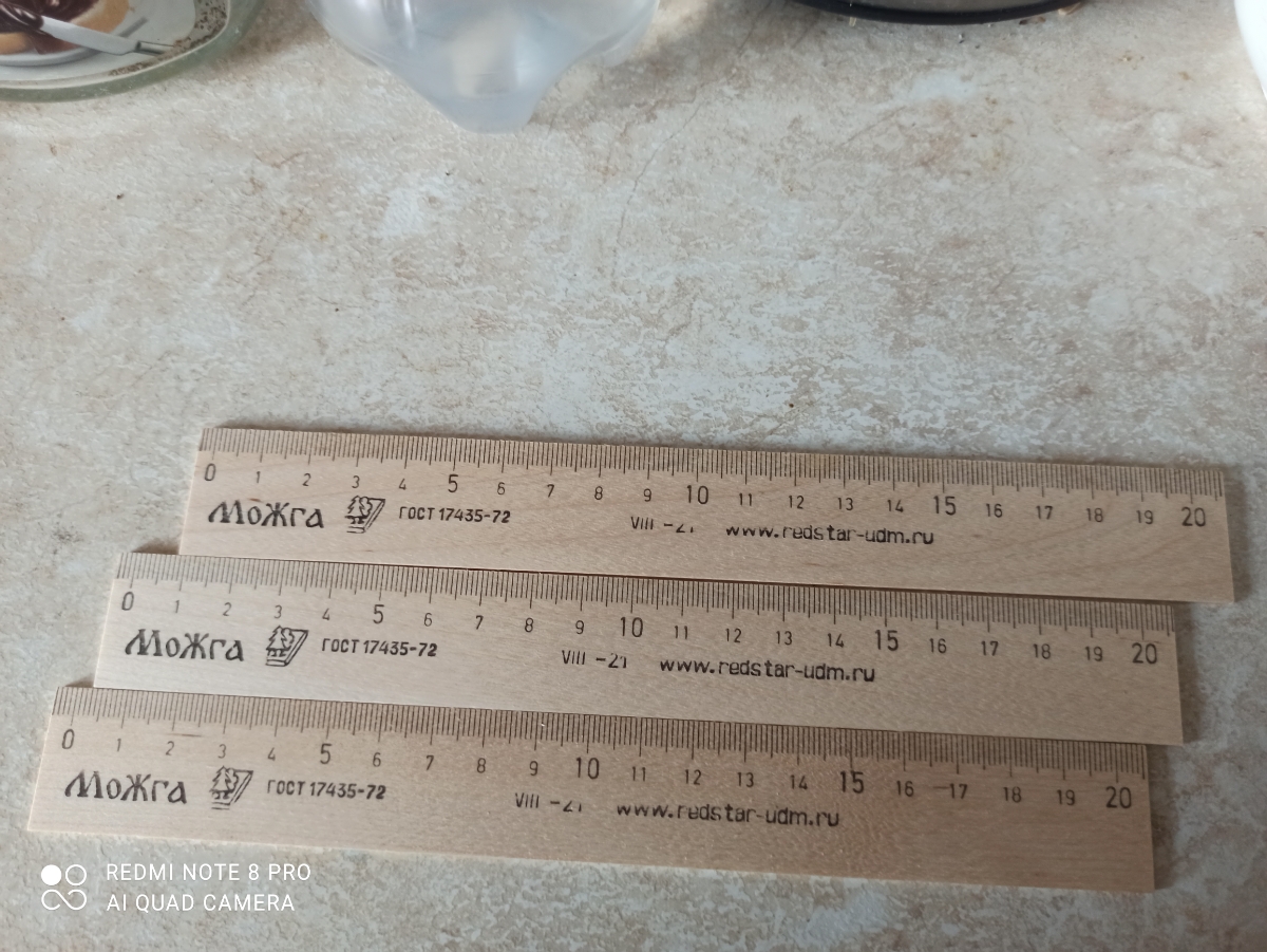Линейка деревянная 15 см, МОЖГА, 3 штуки