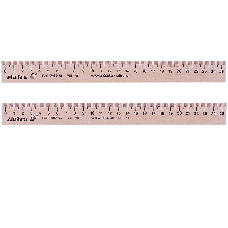 Линейка 25 см, деревянная (комплект 2шт).