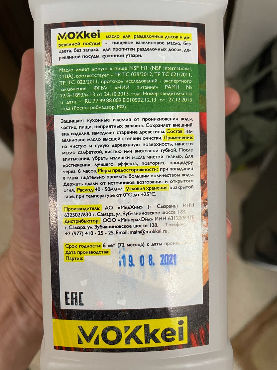 Масло для дерева MOKkei для разделочных досок 0.5 л., Бесцветное