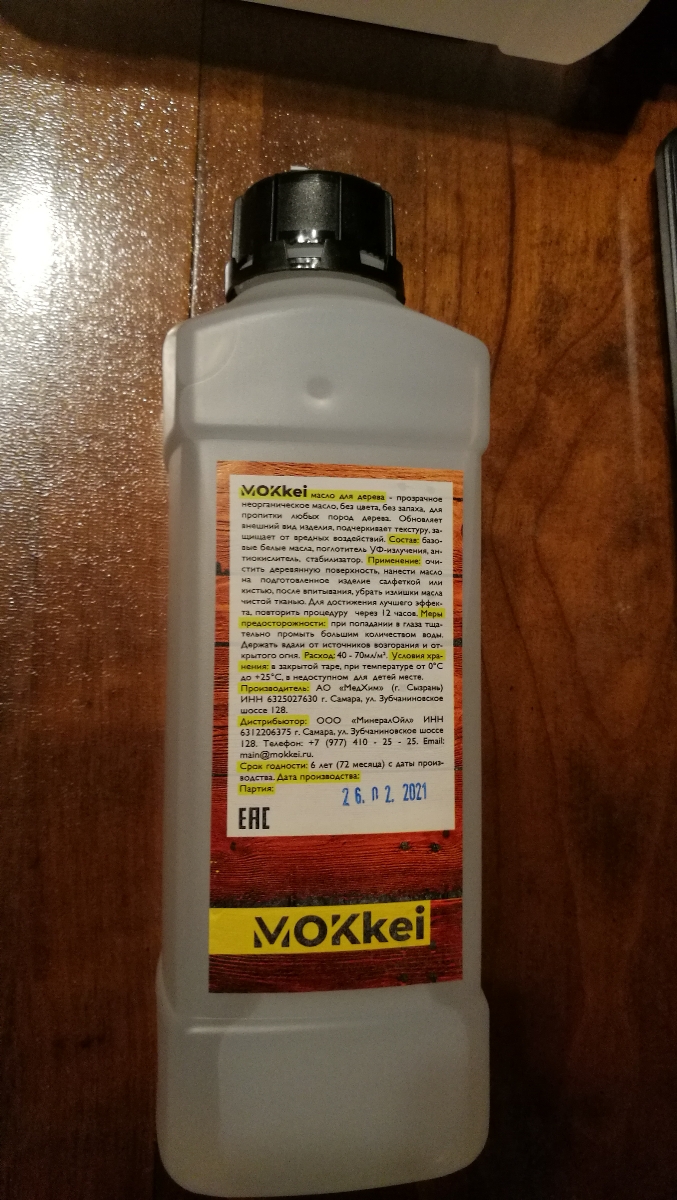 Масло для дерева MOKkei для дерева 1 л., Бесцветное