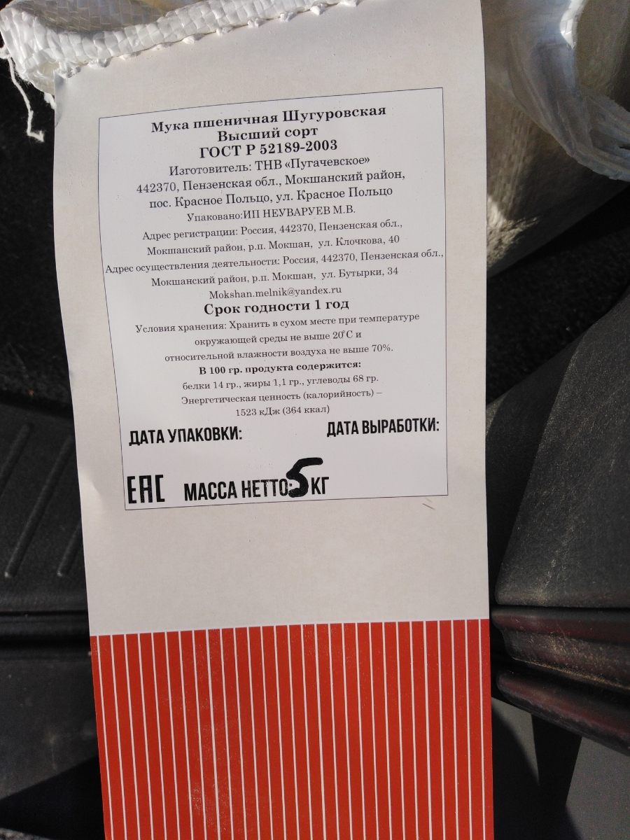 Мука пшеничная высшего сорта из Шугуровского зерна, пакет 5 кг