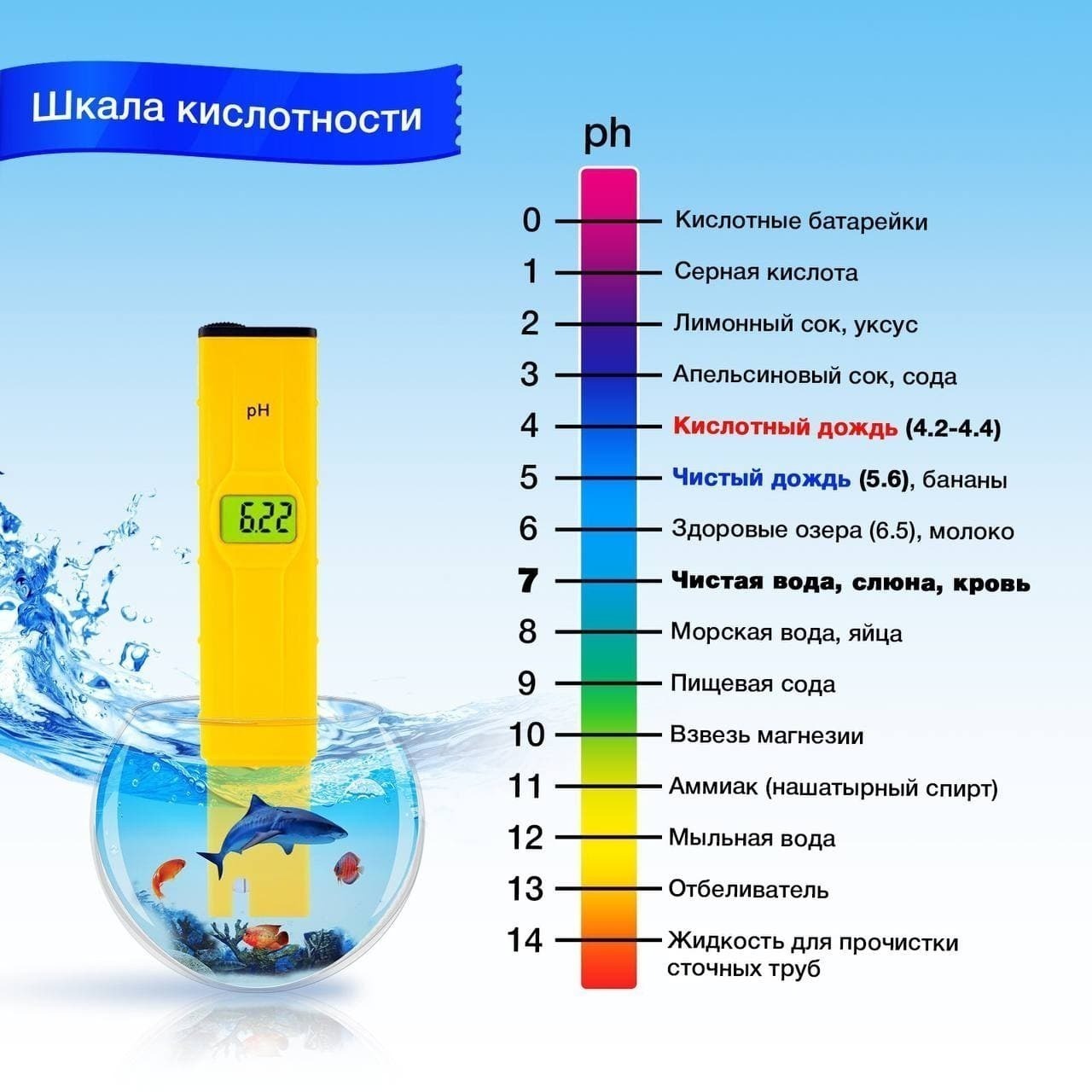 pH метр для воды цифровой с буферными порошками для калибровки, измеритель кислотности