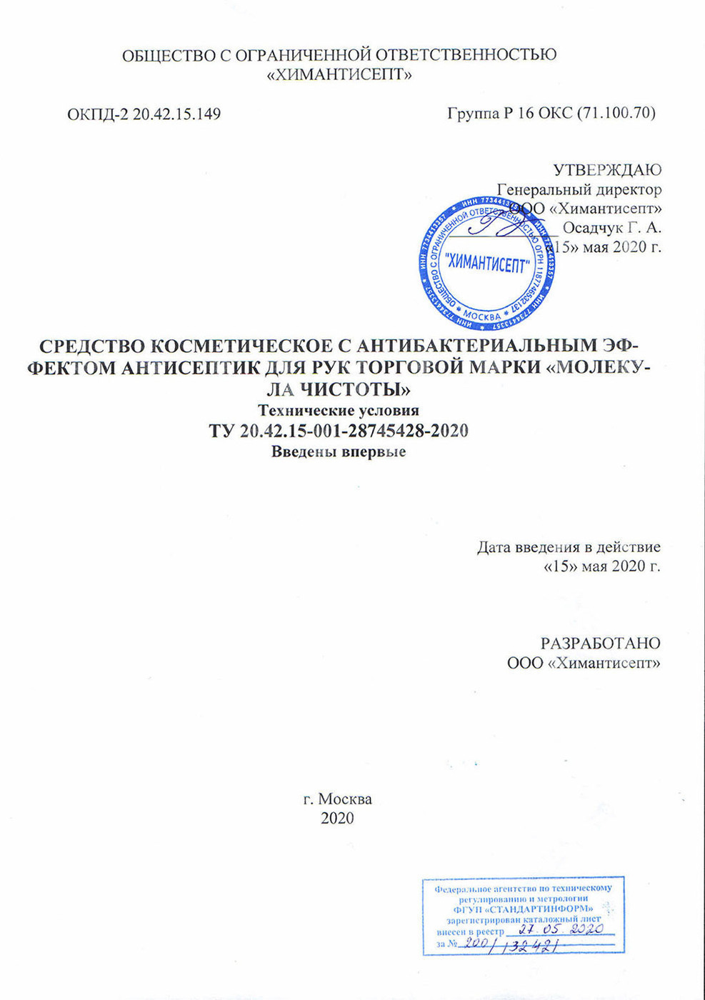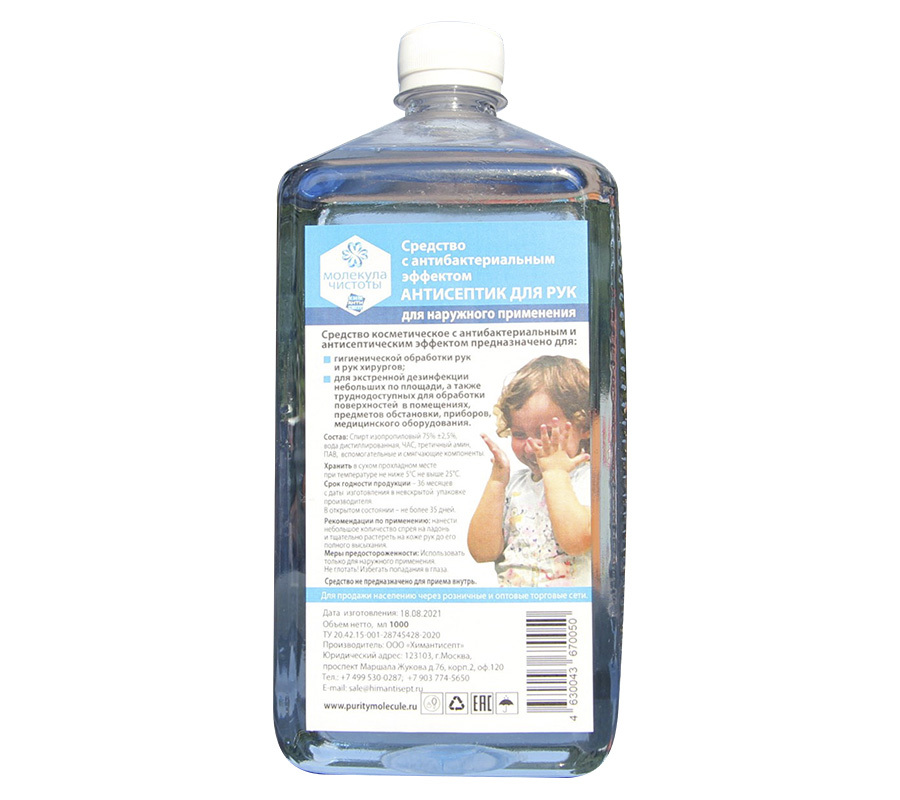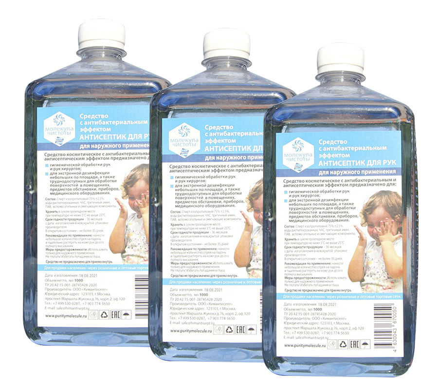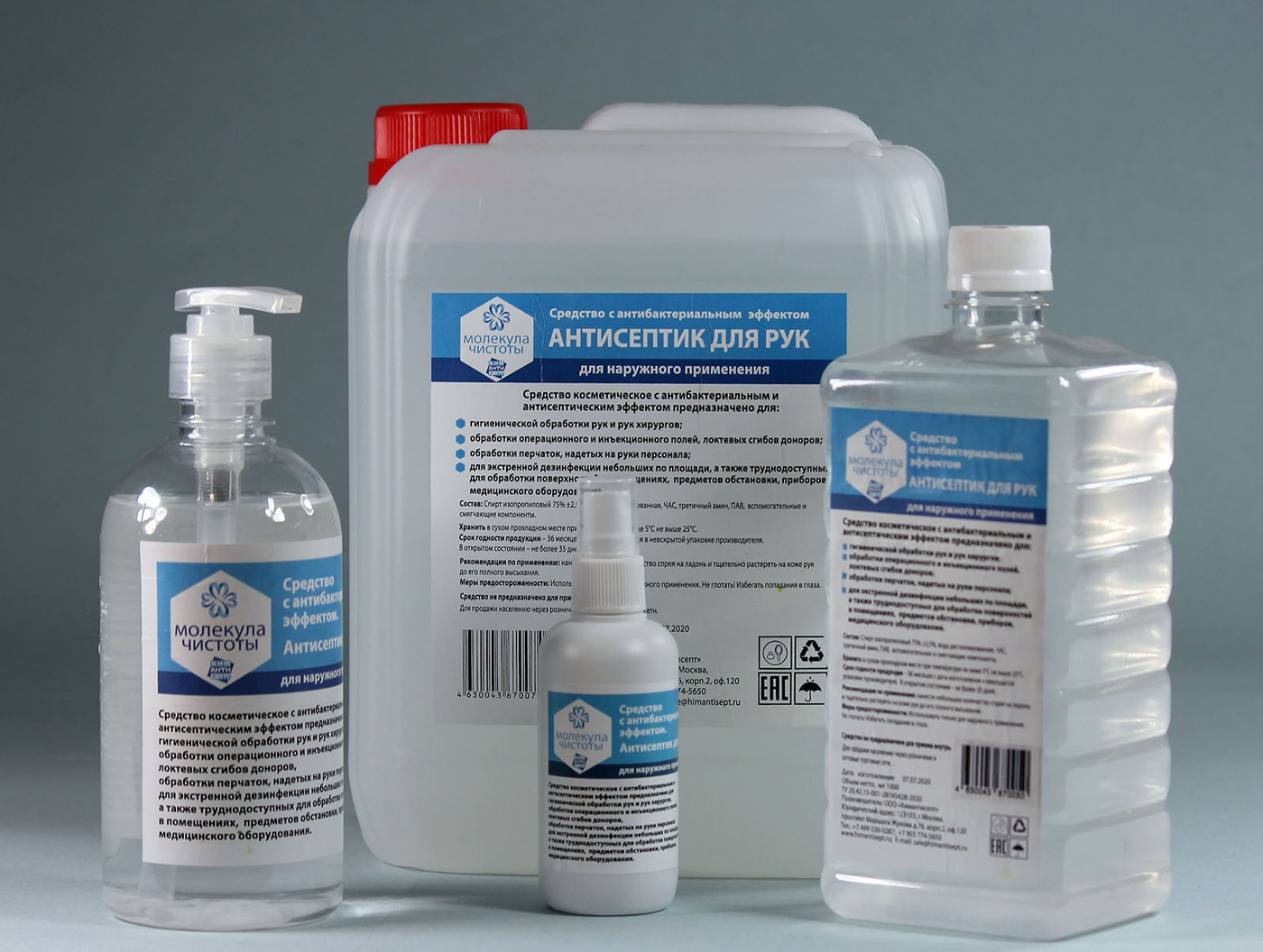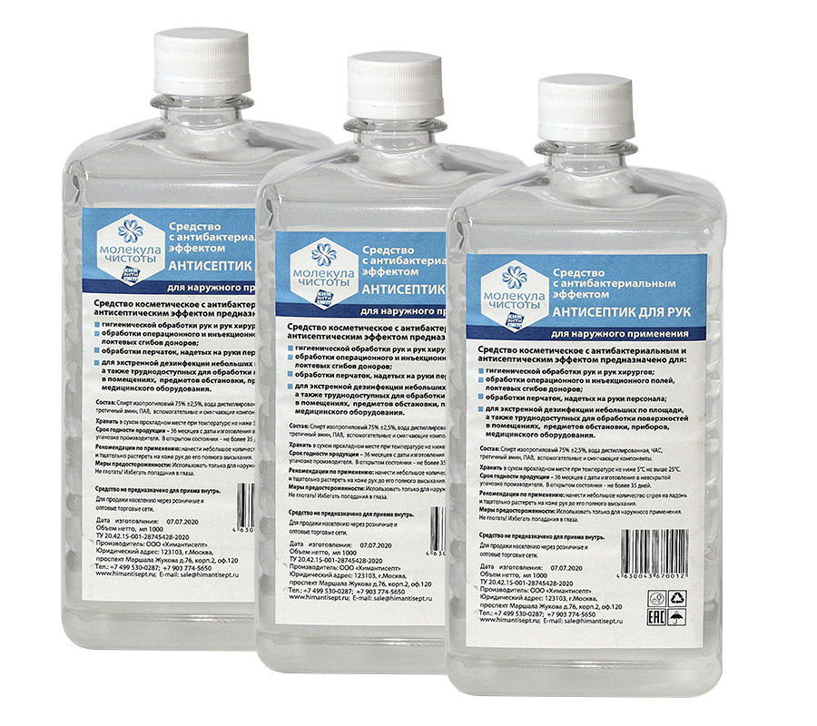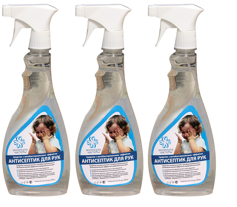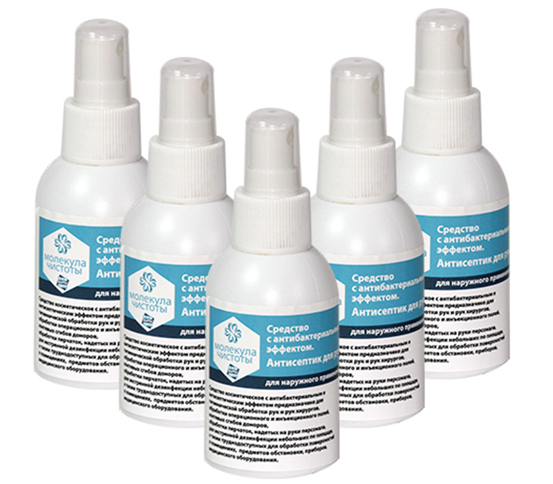 Антисептик для рук Молекула чистоты, 75% изопропилового спирта, 100 мл., 5 шт,