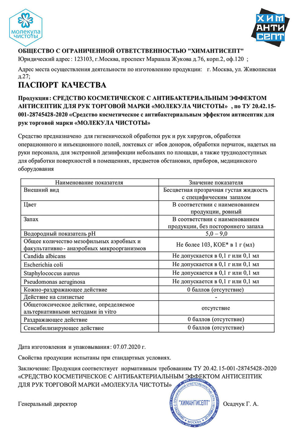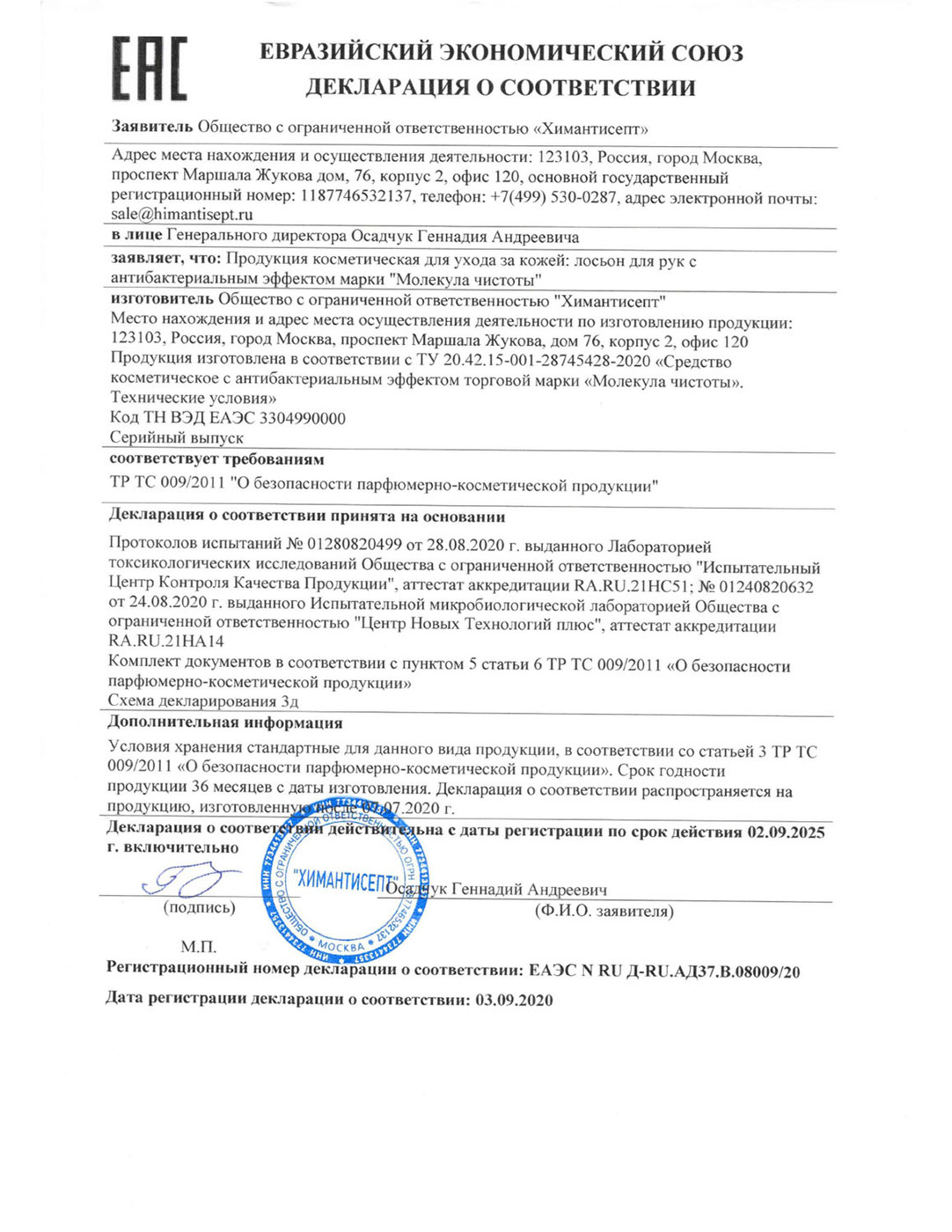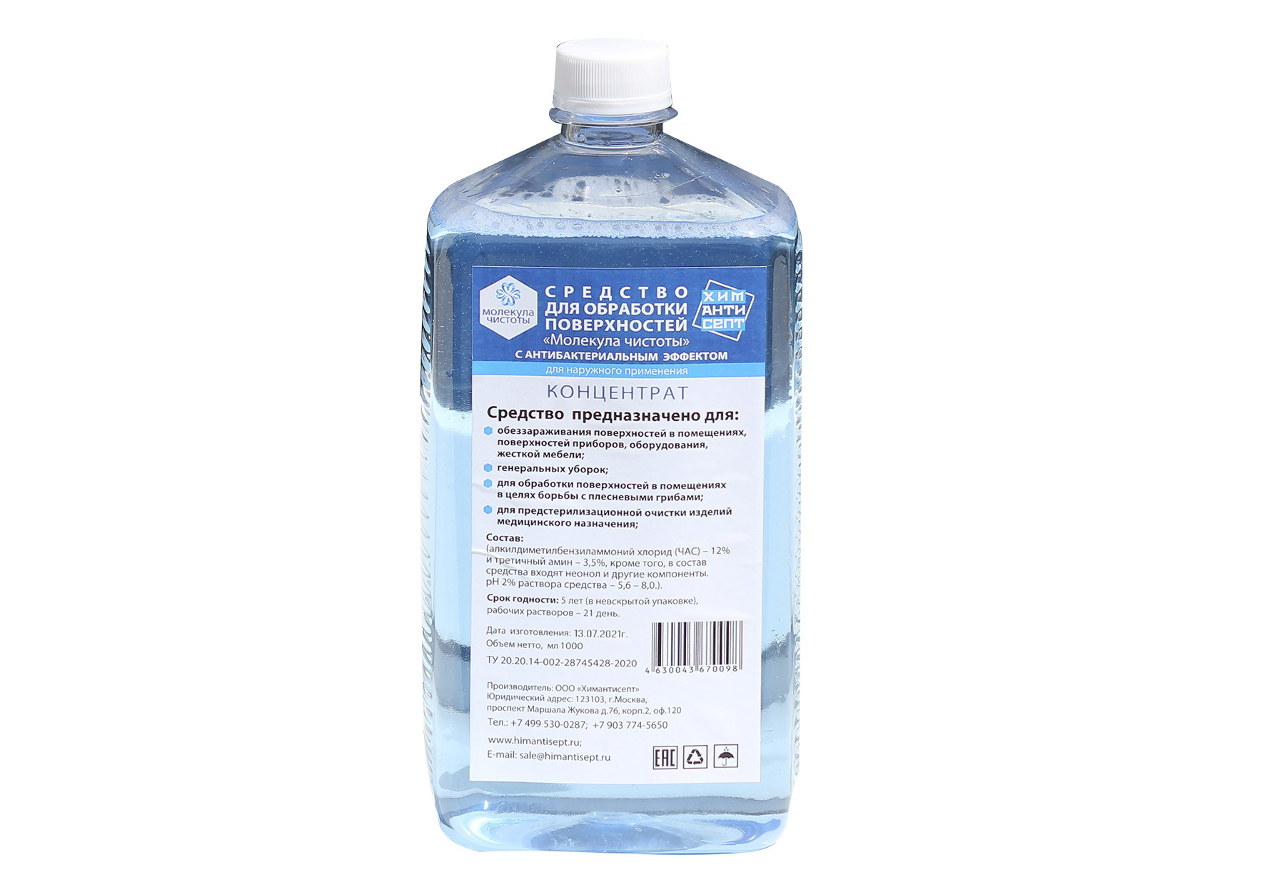 Средство для обработки поверхностей (СОП) Молекула чистоты, концентрат, 500 мл. ЧАС, Третичный амин.